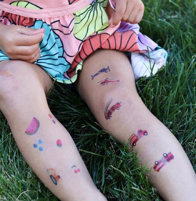 FIRETRUCKS, UNICORNS, DINOSAURS, BUTTERFLIES... IT SERIOUSLY CANNOT GET ANY CUTER. CREATED WITH THE SENSITIVE SKIN OF KIDDOS IN MIND, THESE TEMPORARY TATTOOS ARE MADE IN THE USA WITH FDA-APPROVED, SKINSAFE INK. OUR WATERCOLOR DESIGNS ARE PERFECT FOR A BIRTHDAY PARTY, GIFT BAGS, OR WHENEVER YOU WANT A FUN WHIMSICAL ACCESSORY. EACH SHEET CAN BE CUT INTO MULTIPLE TATTOOS, OR WORN ALL AT ONCE FOR ONE BIG TATTOO!