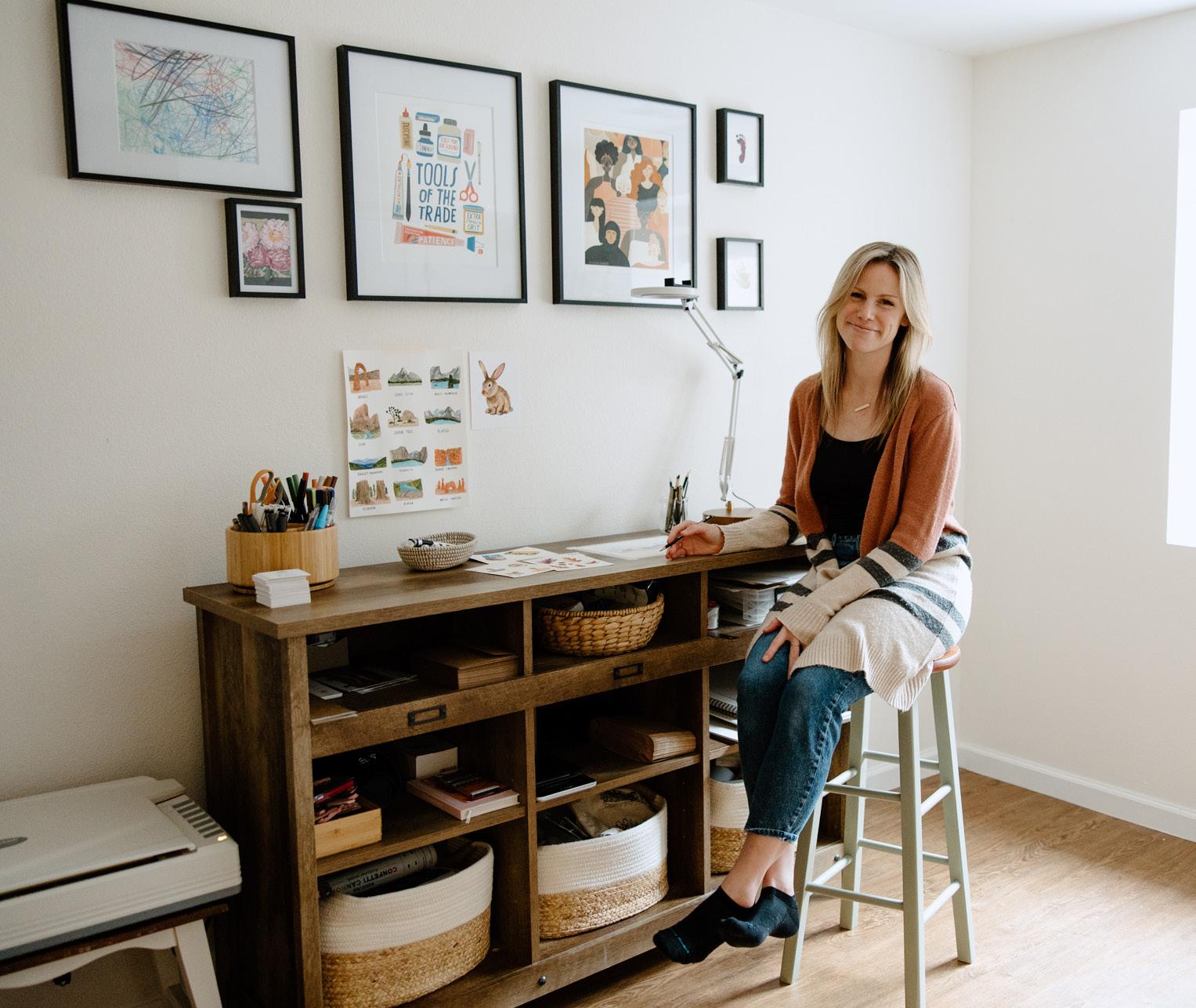 ARTIST & OWNER, EMMA MANNINO, IN HER COLORADO STUDIO.