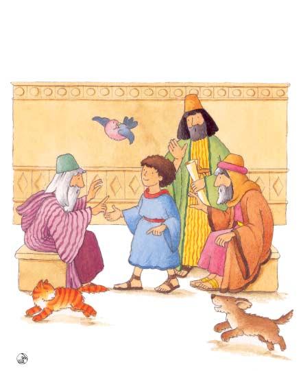 S h e s a w a b a s k e t i n t h e t a l l g r a s s . A b a b y w a s i n s i d e ! T h e p r i n c e s s n a m e d t h e b a b y M o s e s .