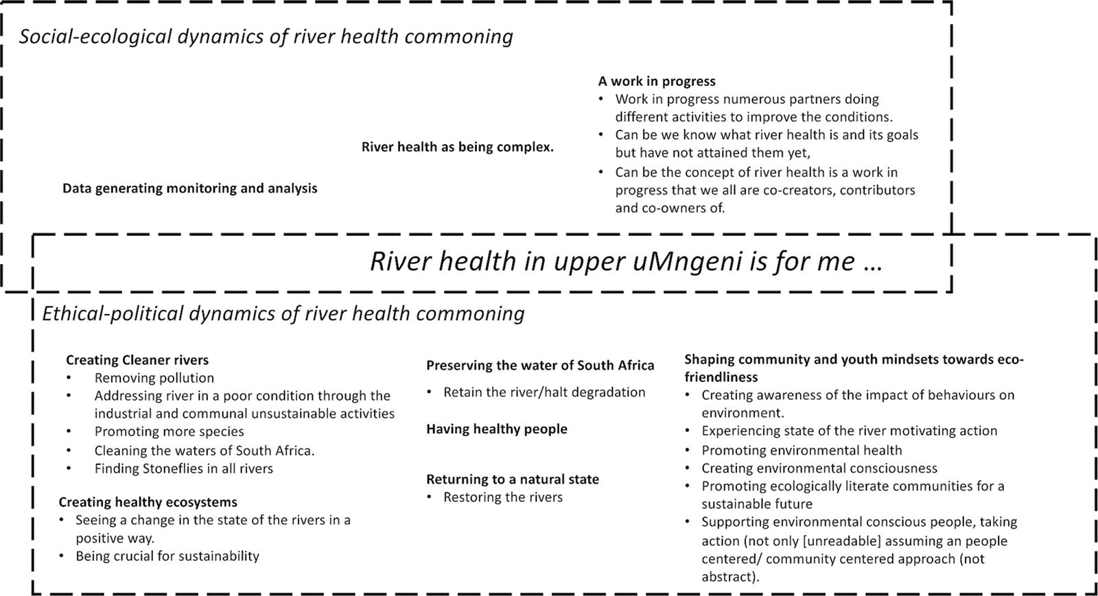 conceptualised in collaboration with communities, and if combined with transformative learning approaches, can expand capabilities for engaged science and more inclusive water governance. Odume et al. argue for giving attention to competing interests and motives in such initiatives. Providing a wider perspective on this, Mickelsson et al. say that, “Life in river systems is increasingly dependent on human actions that bring river health into being”, pointing out that citizen science, practised as engaged sustainability science, is a form of sustainability practice that can heal damaged human-environment relations.