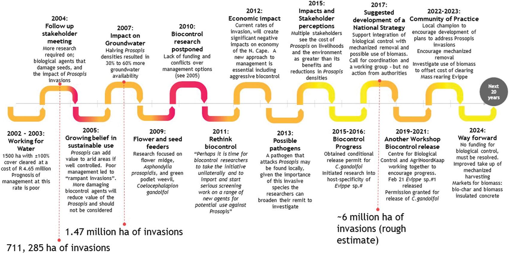 Local and national stakeholders collaborate to take on Prosopis invasions with biological control and biomass use in South Africa
