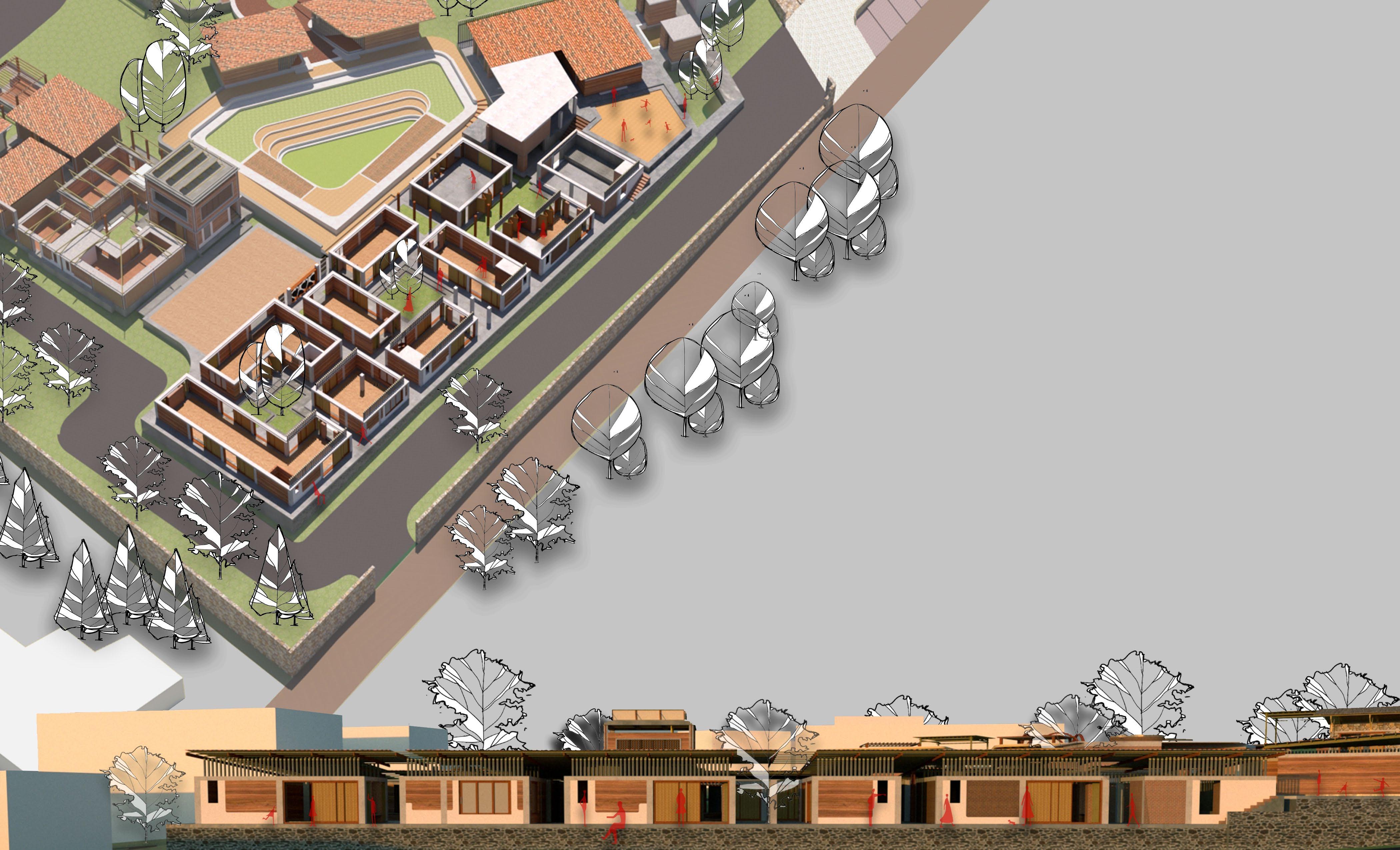 Financial Education Social and collaborative learning Infrastructure Work Essentials Service BUILT FABRIC AND CHRACTER Material as a derivative of architecture RELATIVE SALE BETWEEN USER AND SPACE INTEGRATION OF NATURALLY OBTAINED PATTERNS AND ART BUILT ELEMENTS