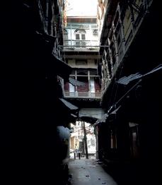 The narrow alley with projection gives the space a very introvert nature , resulting in making the space more active in terms of human scale due to its changing degree of enclosure.