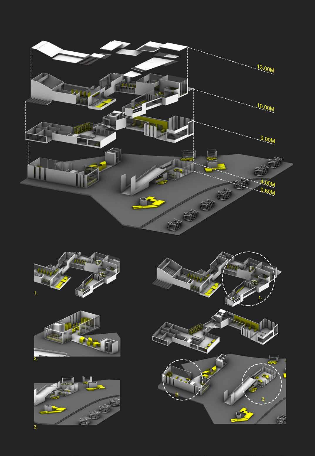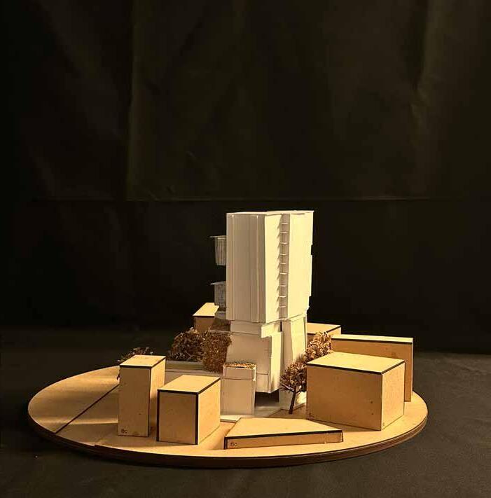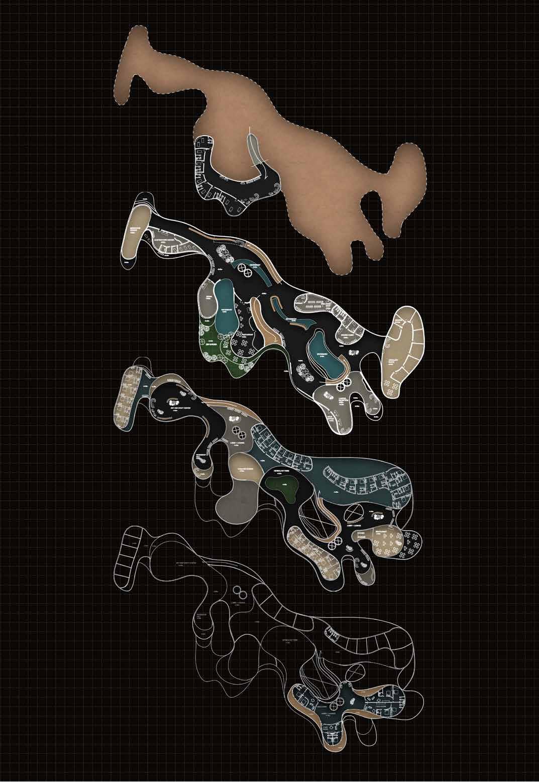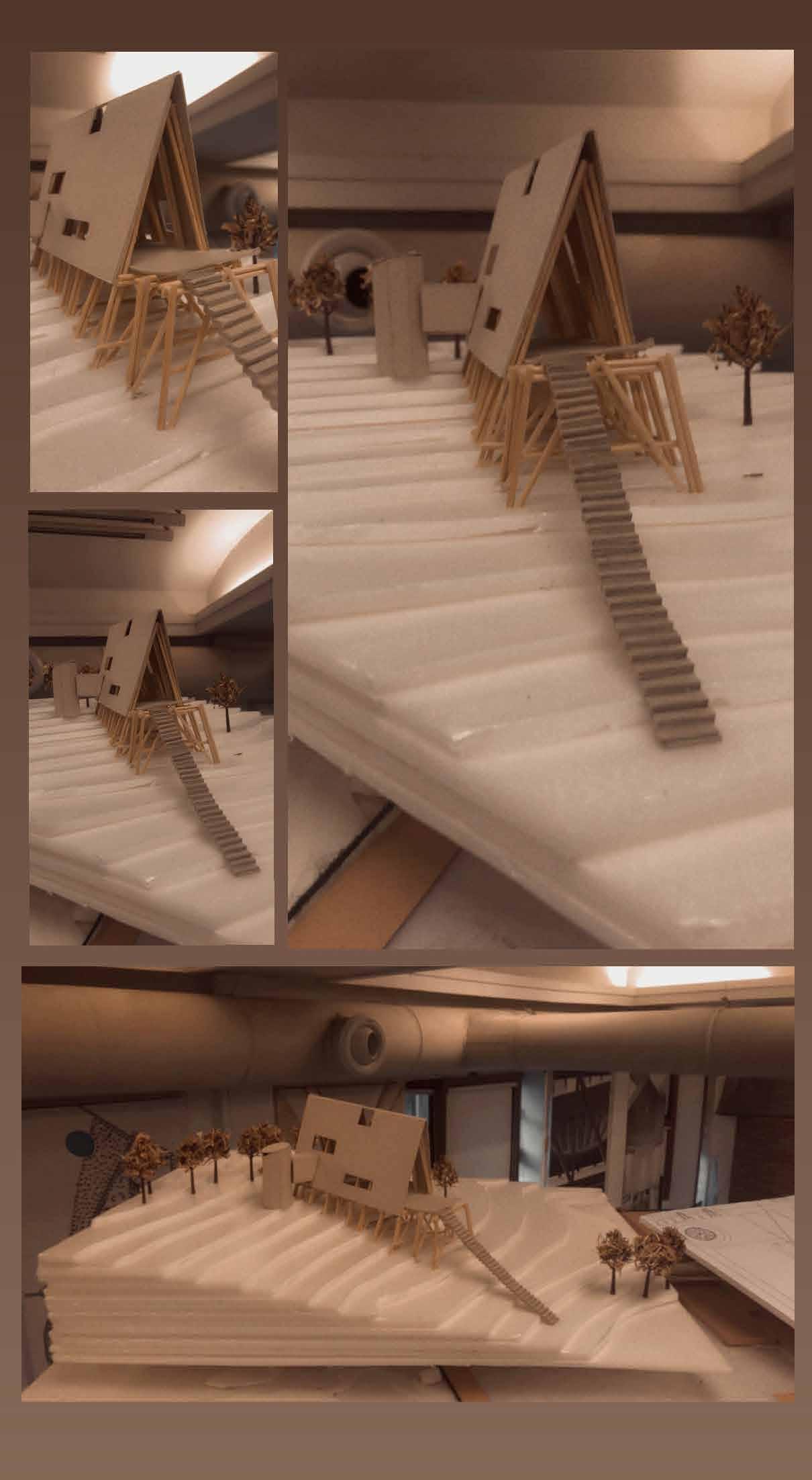 The model itself is concentrated in terms of experience given its volumetric nature. The various segments show varied turgidity levels in the cactus cells through cuts and folds. When there is water loss due to change in pressure and the shrinking of cells and skin, accordion like fold and formed. The formation of the accordion like fold is shown in the segment as well. The flow of these segments indicate the smooth transition between the various stages of turgidity. Rearrangement of cells during the process is shown in the second segment, in form of an interactive space. The project is an architectural take on natural process.