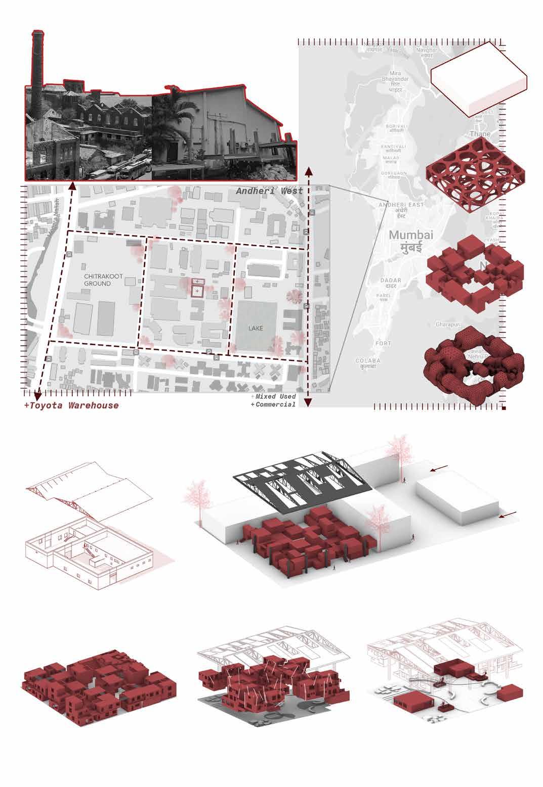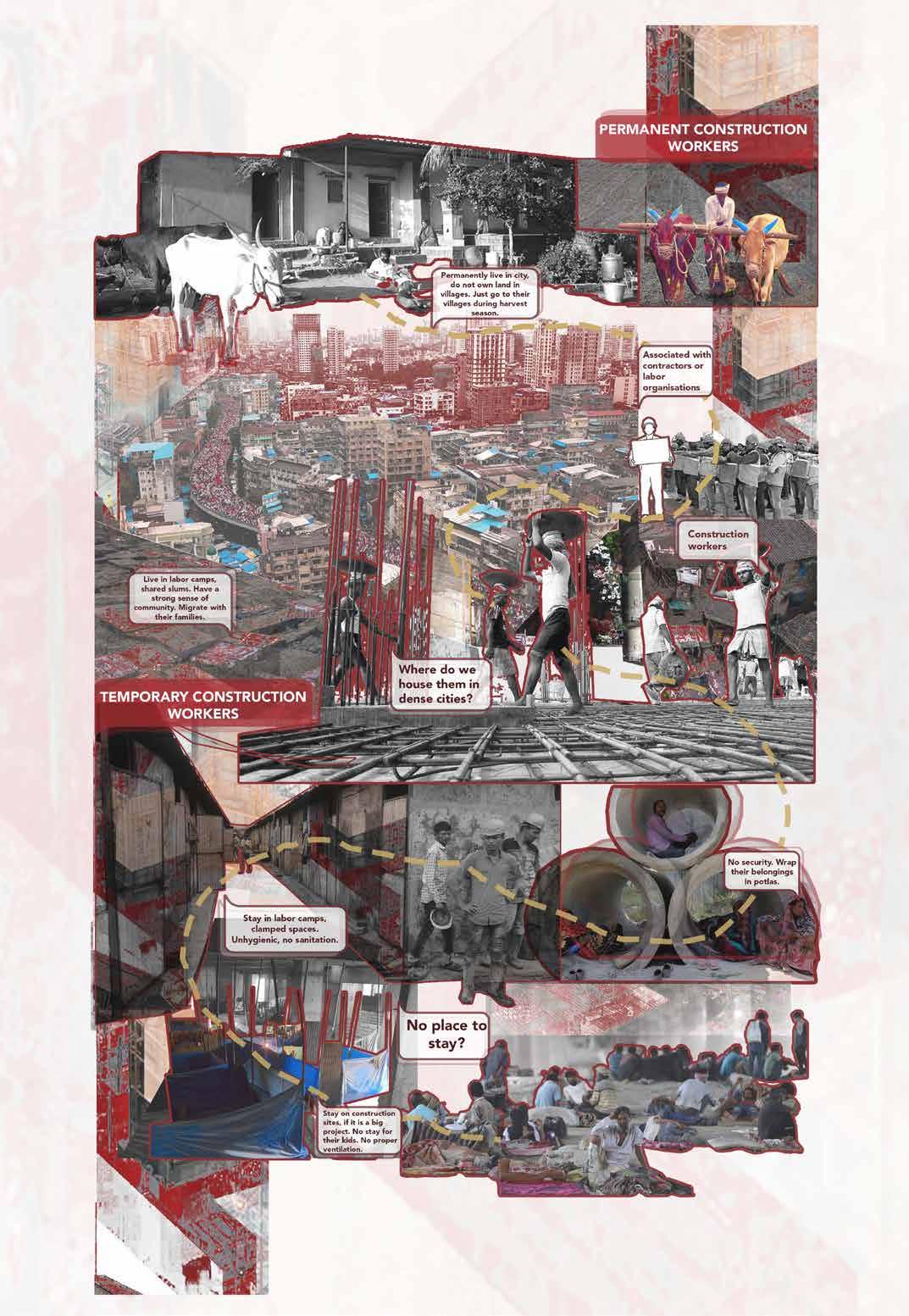 Out of the total labor in India, 4.5 Million belongs to the Informal work sector. They are the migrant workers who work on contract basis. In cities there are two kinds of workers, permanent and temporary, the latter ones trying their luck in cities, with no surity of shelter above them. The argument focuses on housing the construction workers of the Mumbai in the abandoned mills or warehouses of the city. Hence re-using the redundant space in the city which is already dense.