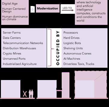 Automation and Technology led to two new emerging typologies - Buildings made by Human for the Machine and Buildings made by Machine for the Human.