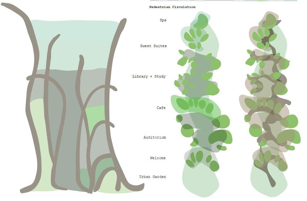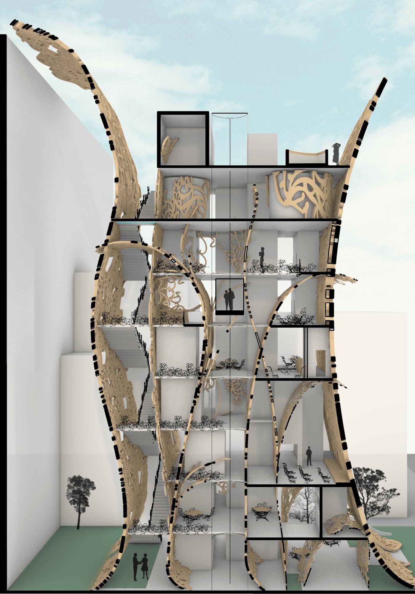 The Branch is a social club for university students located in Printer’s Row, Chicago. This project explores the relationship between ornamentation and structure, through analysis of Art Nouveau tendriling.