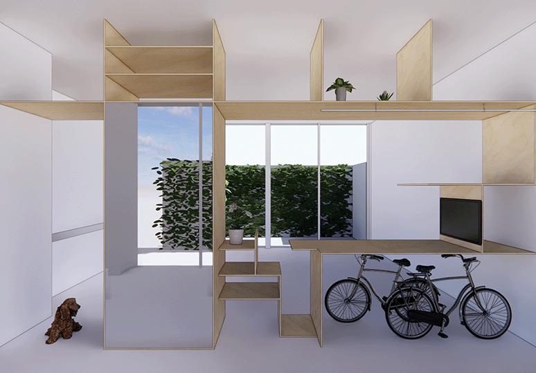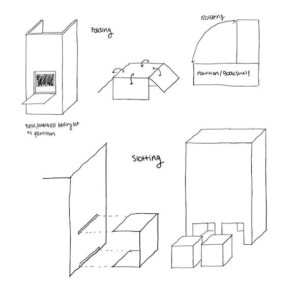 This project was a design charrette, which I later used as a basis for daylighting analysis. The site is a one bedroom living space, with a plywood multipurpose partition creating the division between public and private.