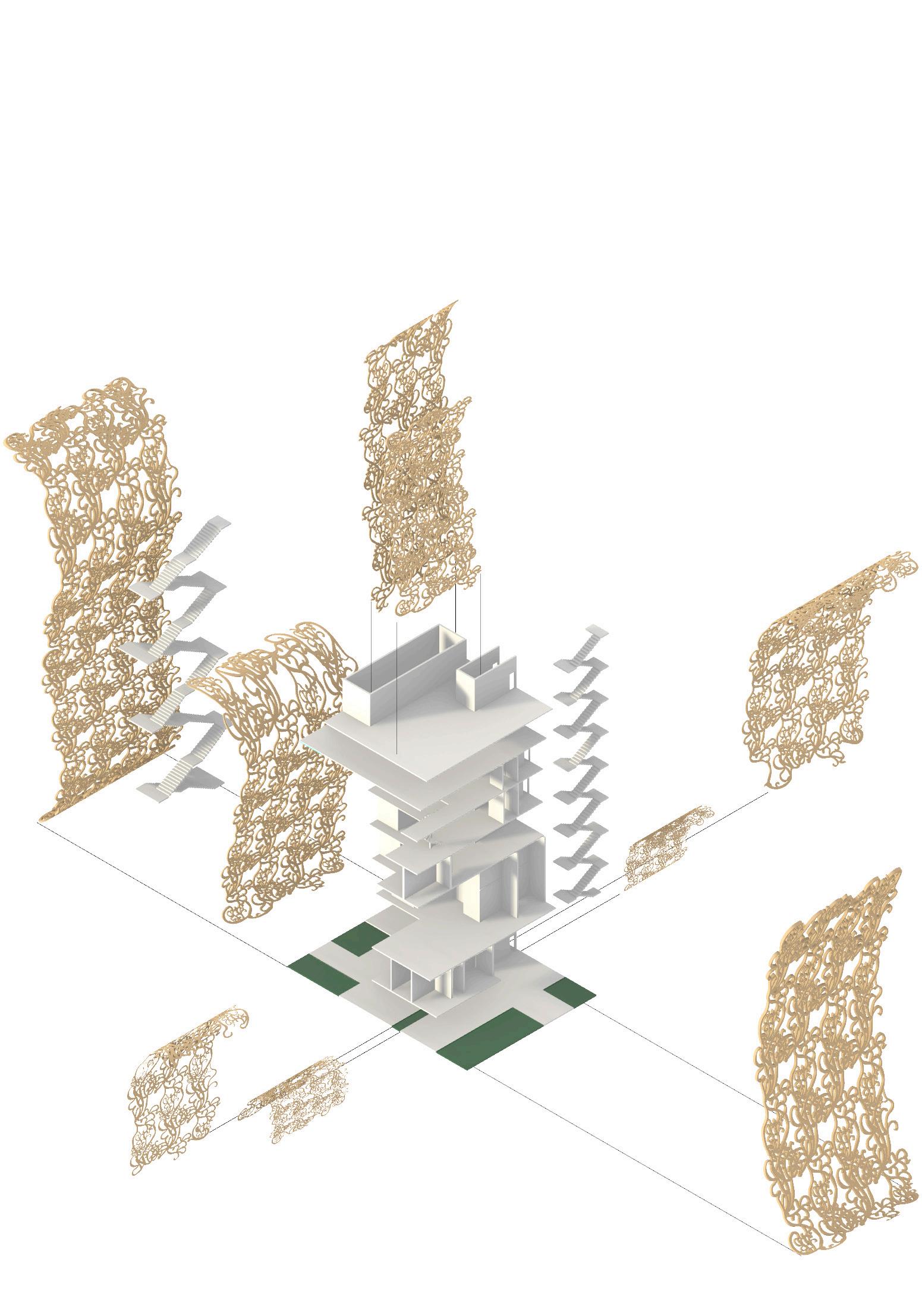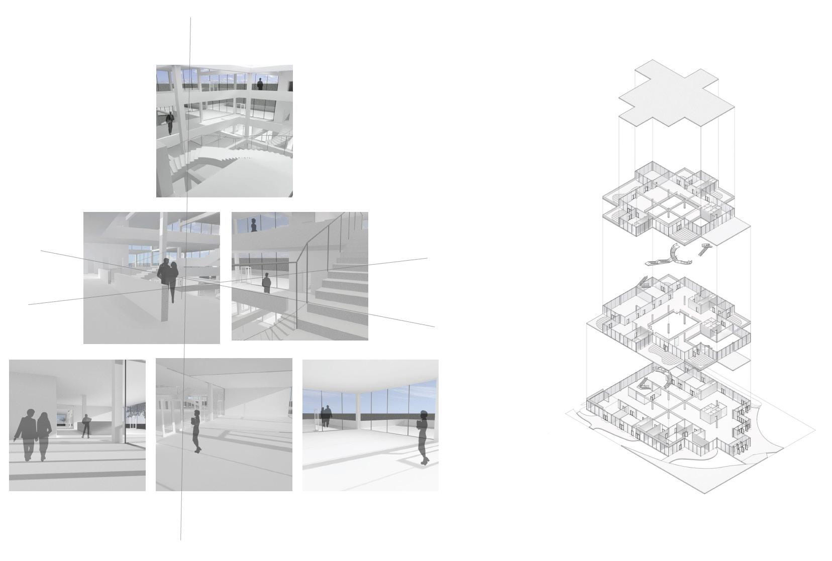 terracing learning center media and modeling I | spring 2020 The Terracing Learning Center is a proposed addition to the university of St. Gallen in Switzerland by Sou Fujimoto Architects. The building lies on a 10x10m grid, which drives the modular design around a central atrium. With Kayla MacLeod and Hayden Blodgett