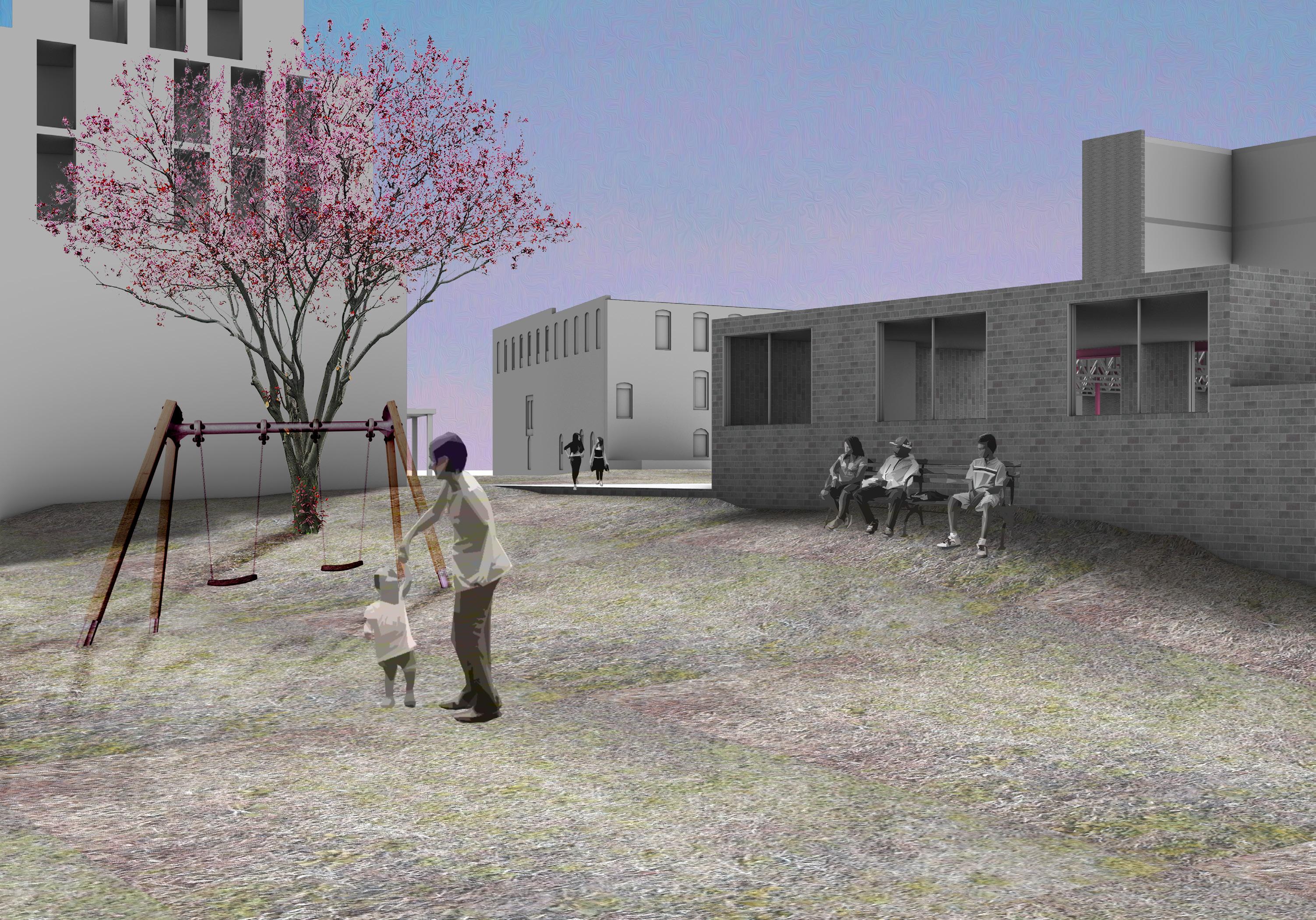 This project aims to contribute to the long term socioeconomic growth of Artisan Yards by providing mixed-income housing, a vocational trade school, and a pharmacy, while also creating a public plaza and playground for the community.
