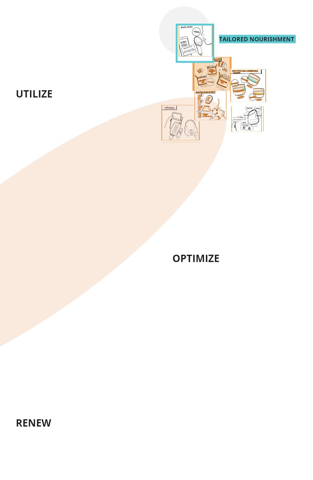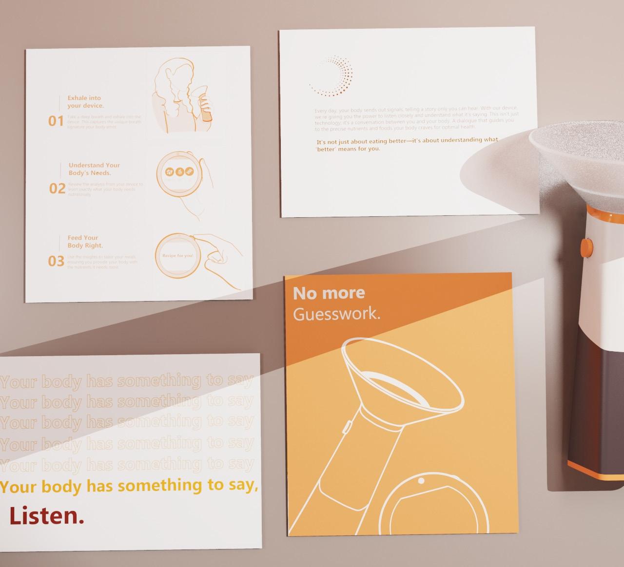 The journey to creating Thrive began with exploring diverse ideas around personal nutrition enhancement. From this broad array of concepts, a particularly promising idea emerged, evolving into the device known today as Thrive. This tool, which analyses VOCs in exhaled breath to tailor meal suggestions, represents a focused refinement of initial explorations. The development process transformed a collection of varied ideas into a singular, effective solution that enriches users’ dietary insights in a user-friendly manner.