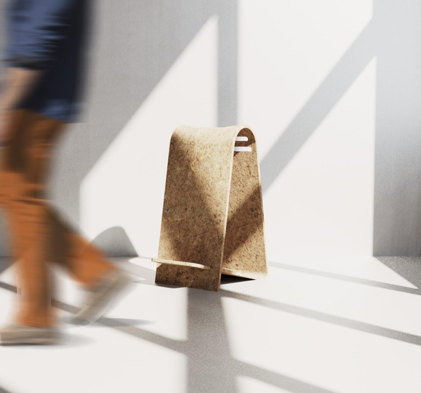 Answering the call, Perch redefines occasional furniture by blending traditional materials with modern design. Utilising a biocomposite of hemp and casein, Perch reinvigorates the old as the new, introducing a sustainable, lightweight, and portable seating solution. It uniquely celebrates ‘inbetween’ moments in workspaces, enabling quick, flowing conversations and the creation of casual interaction islands. This contemporary approach not only meets but elevates the brief by fostering dynamic and versatile conversation spaces, encouraging users to pause and ‘perch’.
