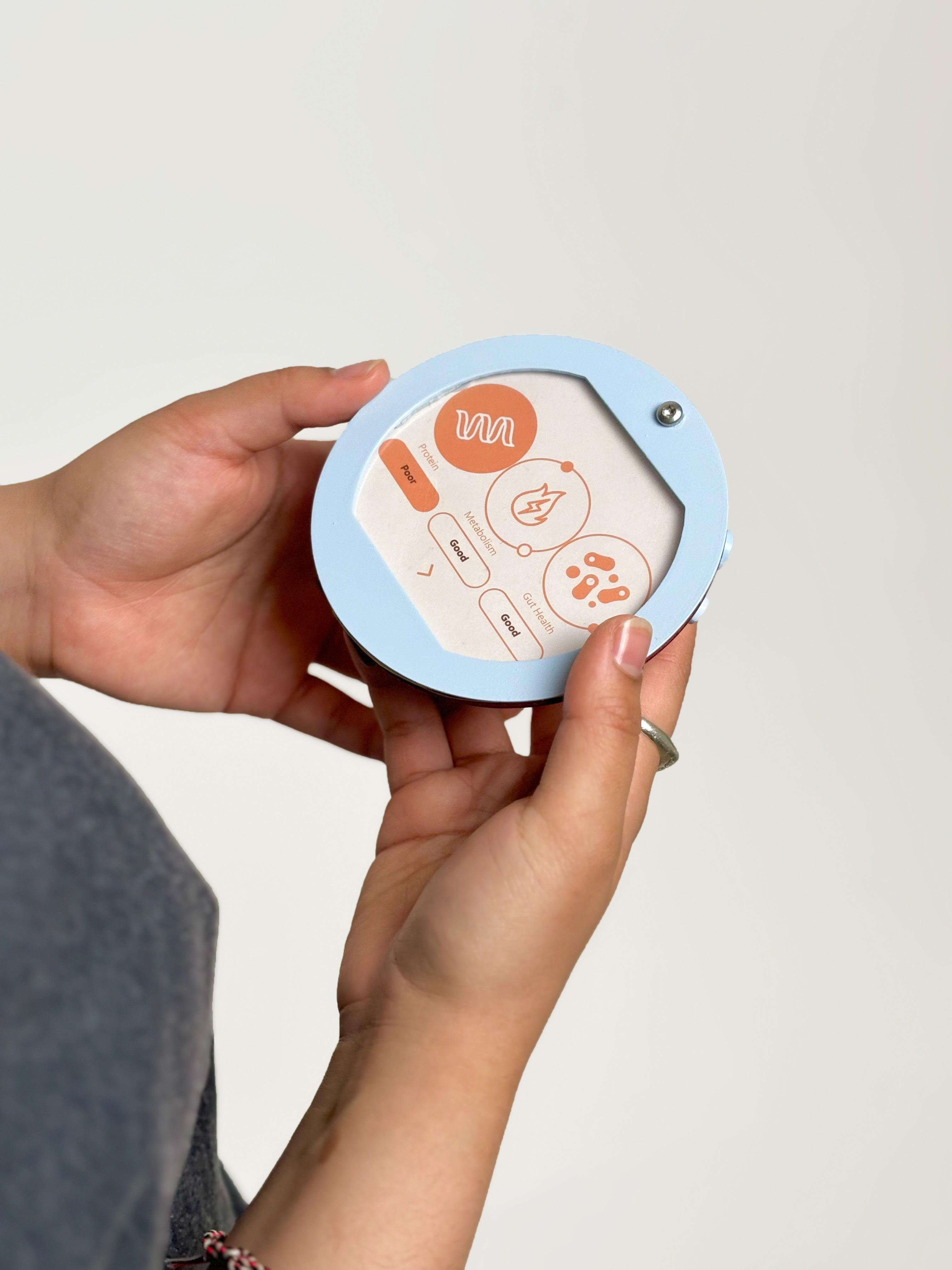 The device reimagines the integration of advanced technology with the simplicity of analog operation. With a single button, users access digital accuracy in monitoring their nutrition while enjoying the straightforward, tactile satisfaction of analog controls. This unique blend ensures that managing nutritional health is both precise and effortlessly intuitive.