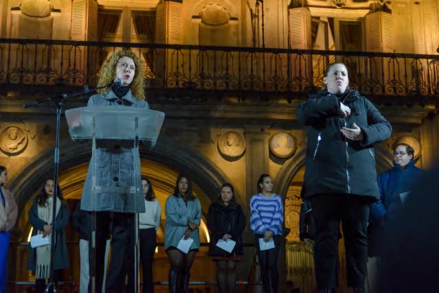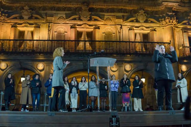 ElalcaldedeSalamanca,CarlosGarcía Carbayo,yrepresentantesdediversas institucionesestuvieronpresentes. Duranteelevento,seleyóun ManifiestoacargodeAnaSuárez, quienanteriormenteocupóelcargode concejaladeFamiliaeIgualdadde Oportunidades.ElManifiestoabordóla denunciayconcienciaciónsobreesta luchaqueinvolucraatodos, mostrandosolidaridadconlasvíctimas yrecordandoaaquellasquehan perdidolavida. LosalumnosdelMásterUniversitario enEstudiosInterdisciplinaresde GénerodelaUniversidadde Salamancaleyeronundecálogocontra laviolenciadegénero. Elactoseinicióyconcluyócon cancionessignificativas,yseguardóun minutodesilencioenmemoriadelas víctimas,quesumaron33enelaño 2022y1.163desde2003.