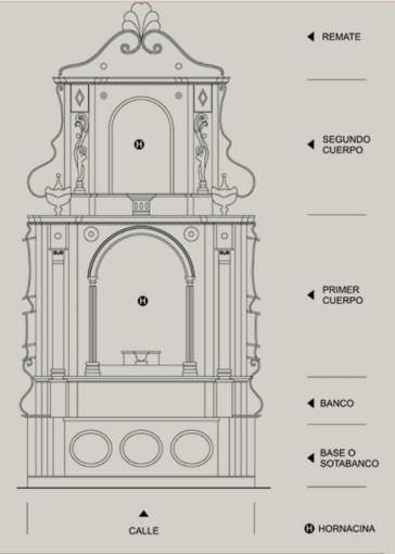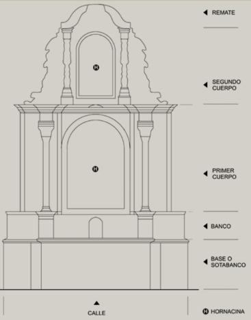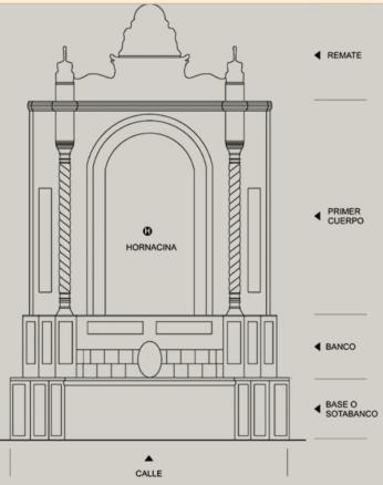 Se compone de una hornacina de San Bernardo, el segun cuerpo tambien del mismo santo pero en menor dimensión.