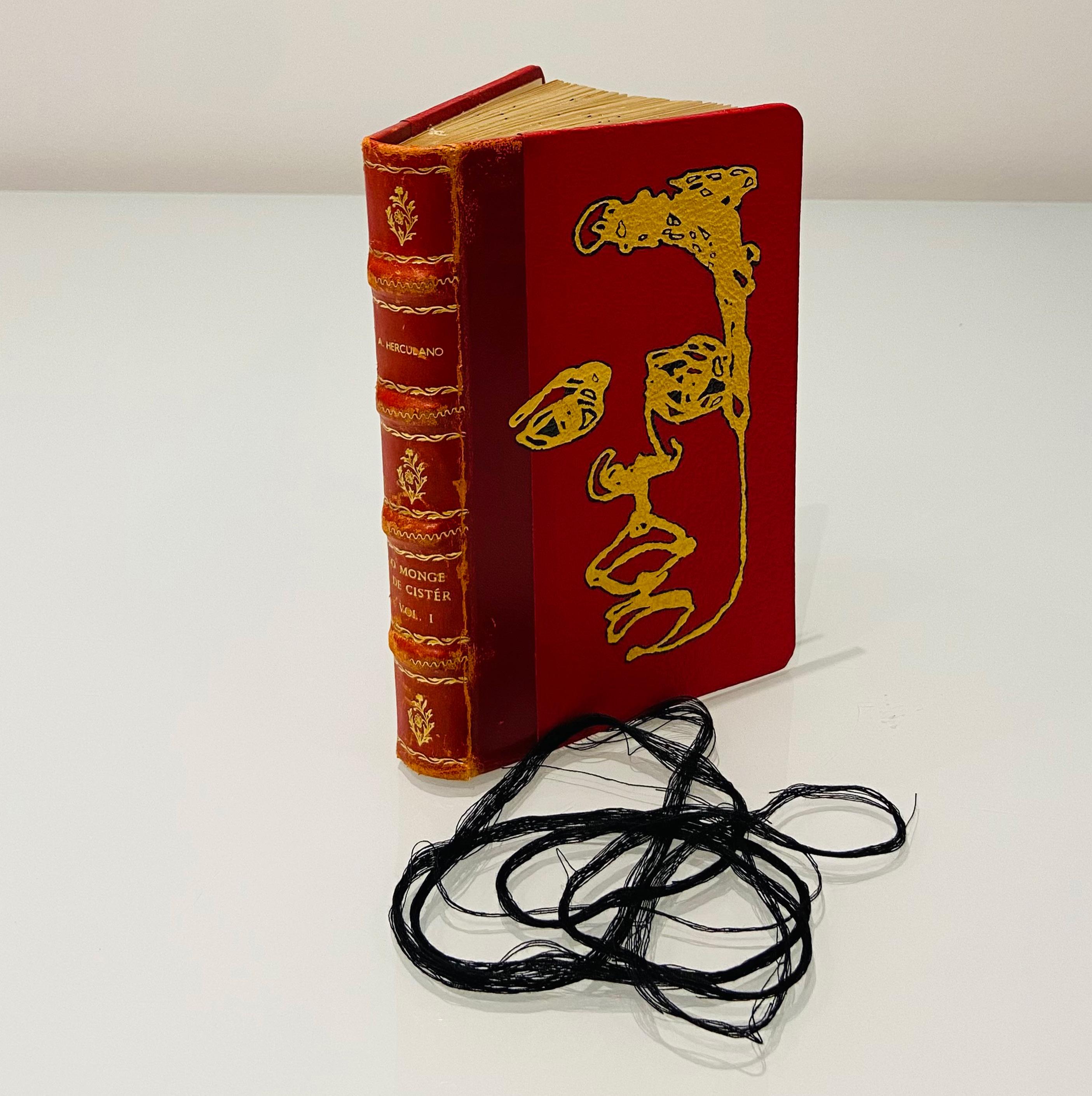 Sofia Saleme, “O riscar da cicatriz” 10, 2023, livro, pó de ouro, tinta da china e linha de costura, aproximadamente 20 x 15 x 4 cm