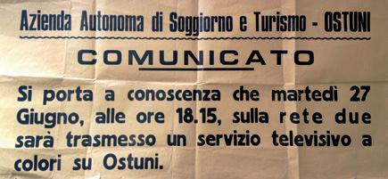 Uno dei tanti manifesti con i quali, nel giugno del 1978, si comunicava alla popolazione la data e l’ora della messa in onda del servizio televisivo su La nonna racconta, il primo documentario RAI a colori sulla città di Ostuni.