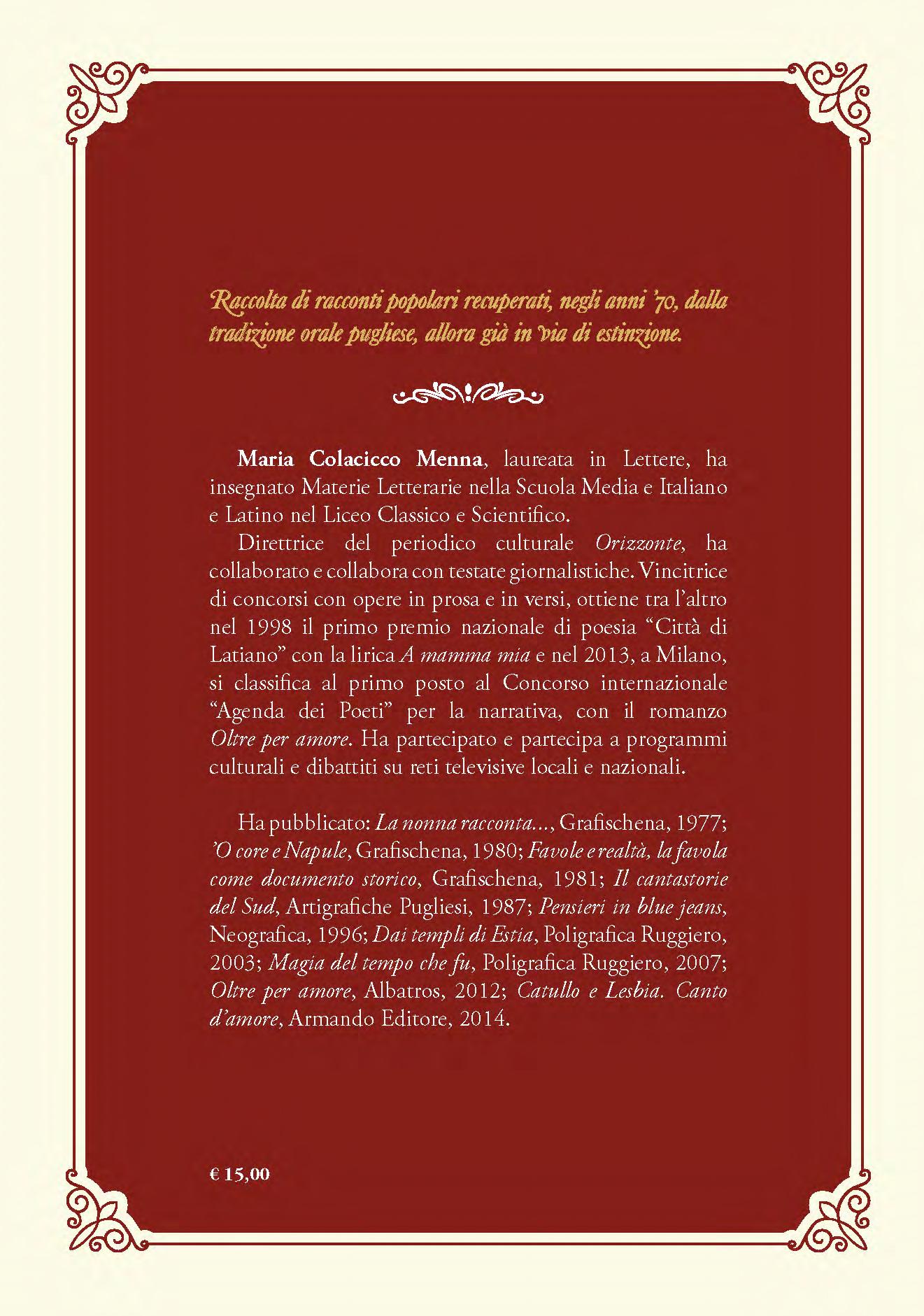 Oggi, nella forma scritta, lo riproponiamo alle moderne generazioni non solo con finalità ricreative e con l’intento di trasmettere valori ancora condivisi, ma, in quanto depositario, veicolo di cultura e voce pulsante del passato, lo riproponiamo, anche e soprattutto, come documento prezioso a cui attingere, per indagare, cercare e ritrovare le proprie radici.