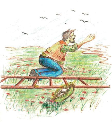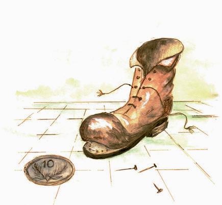 All’impatto col tronco degli alberi le dita dei briganti si frantumarono tra pianti e grida di dolore e, mentre saltavano dal dolore, il nostro calzolaio, ritto, con le cinque dita della mano infilate nel tronco dell’albero, si godeva la vittoria.