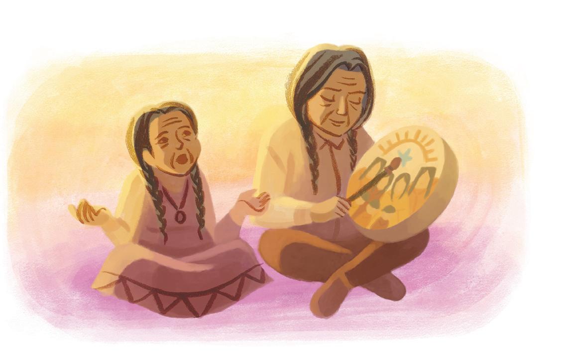 Carol thought about how Moshum’s music made her feel. She imagined herself spreading healing through her own songs and through the heartbeat of her own special drum. She couldn’t wait to become a singer, so she hit her new drum in agreement—POM!