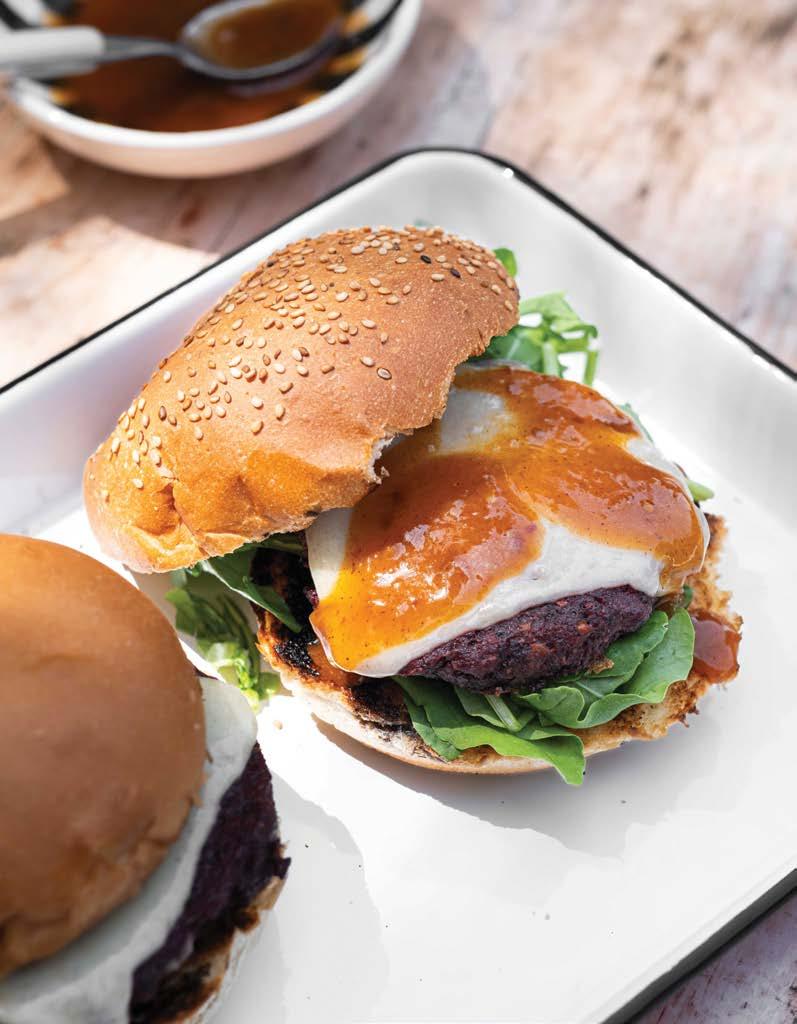 PEACH TART BY TA'RIN A great way to make the most of peaches FERMENTED ISLAND Battered fish tacos with Fermented Island Hot Sauce BEET + BEAN BURGER With melted cheese and hot sauce LETTUCE GAZPACHO By Tom Peters of Gracy's Arts