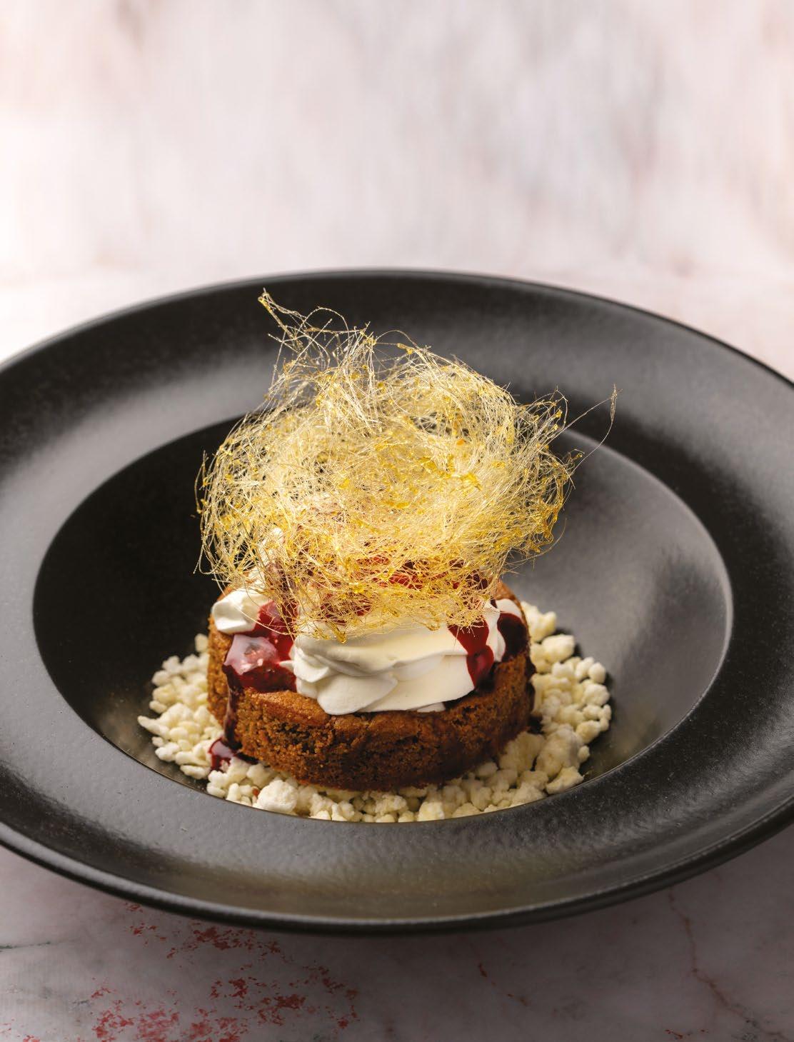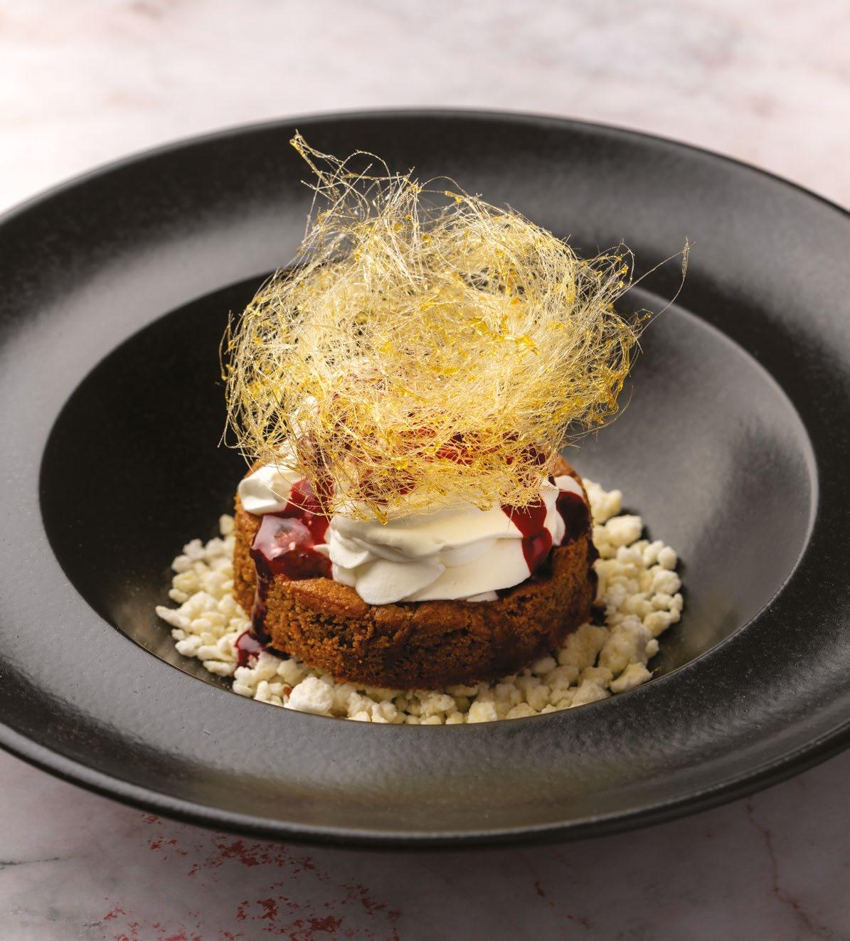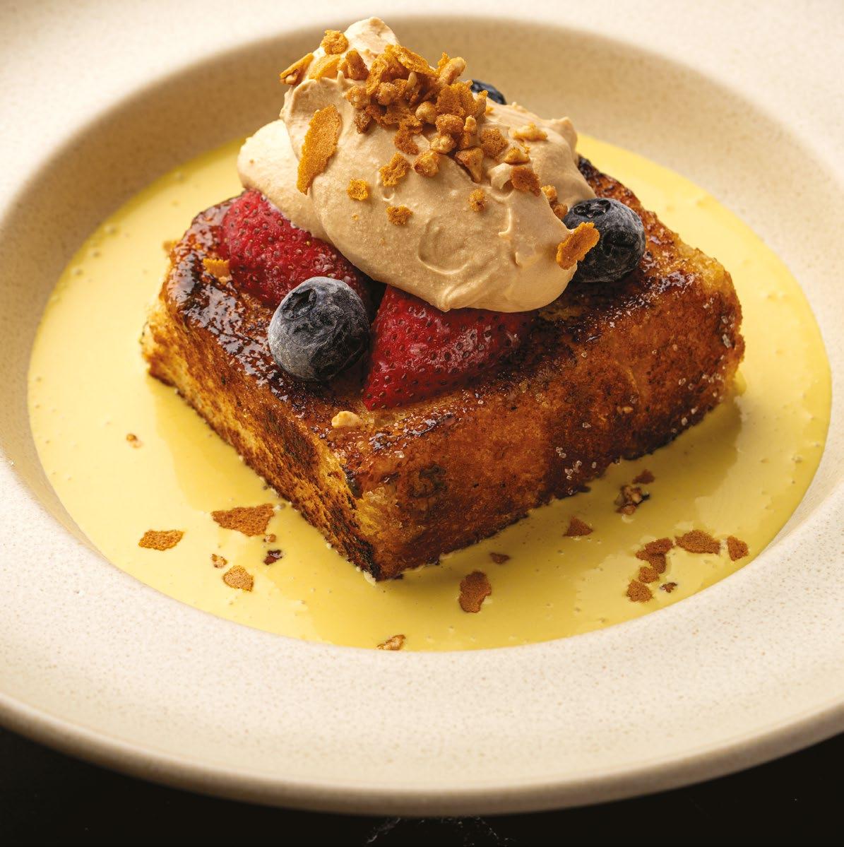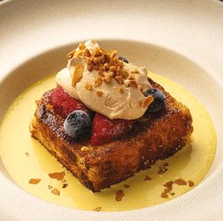 A LUXURIOUS DESSERT LAYERING SAFFRON-INFUSED CREAM, CARAMELISED BRIOCHE, AND WHIPPED CARAMEL, FINISHED WITH FRUIT AND CRUNCH FOR CELEBRATORY INDULGENCE.
