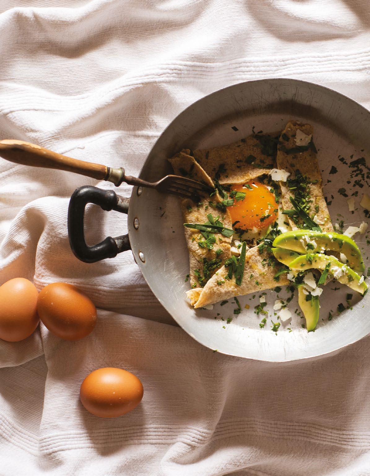 Crack an egg gently into the centre of the crepe. Fold the edges inward to create a loose parcel, leaving the yolk visible in the centre.