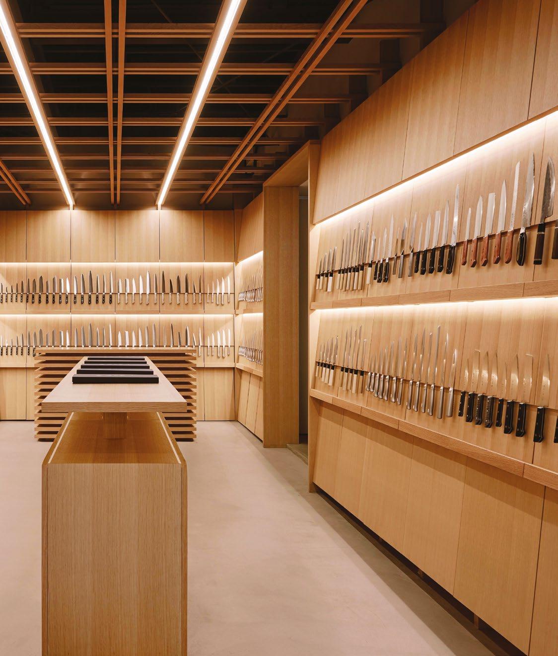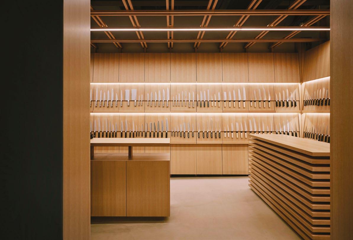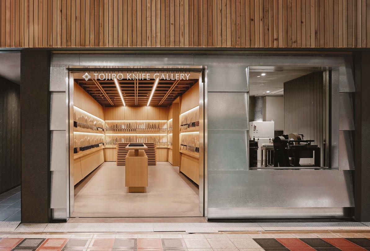 Award winning Osaka knife gallery merges retail and maintenance, celebrating Japanese craftsmanship, transparency, longevity, and contemporary design rooted in tradition.