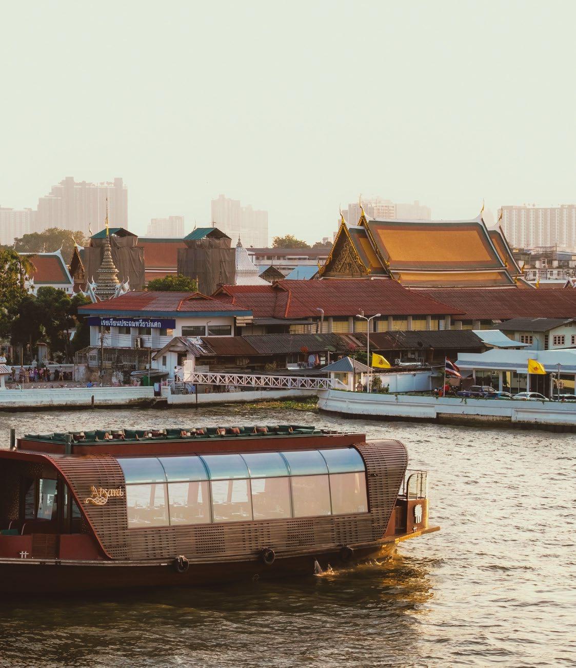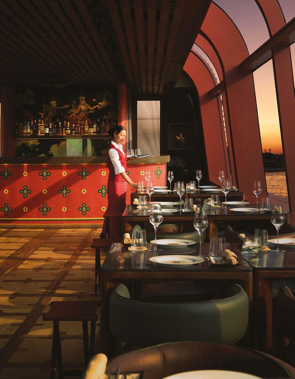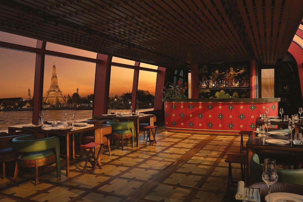 A historic rice barge reborn as a floating restaurant, Apsara Cruise blends Bangkok heritage, river views, and award-winning contemporary design.