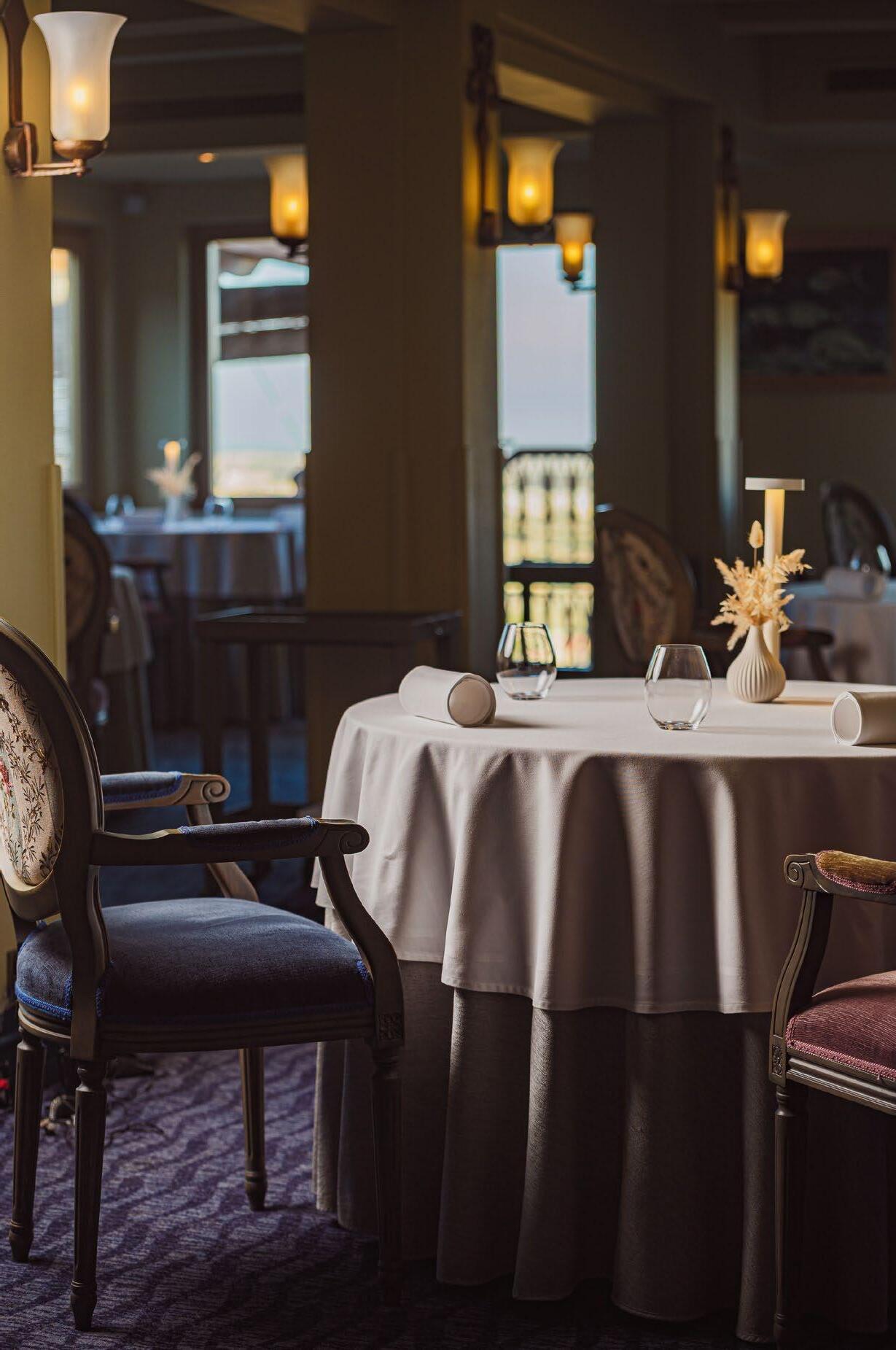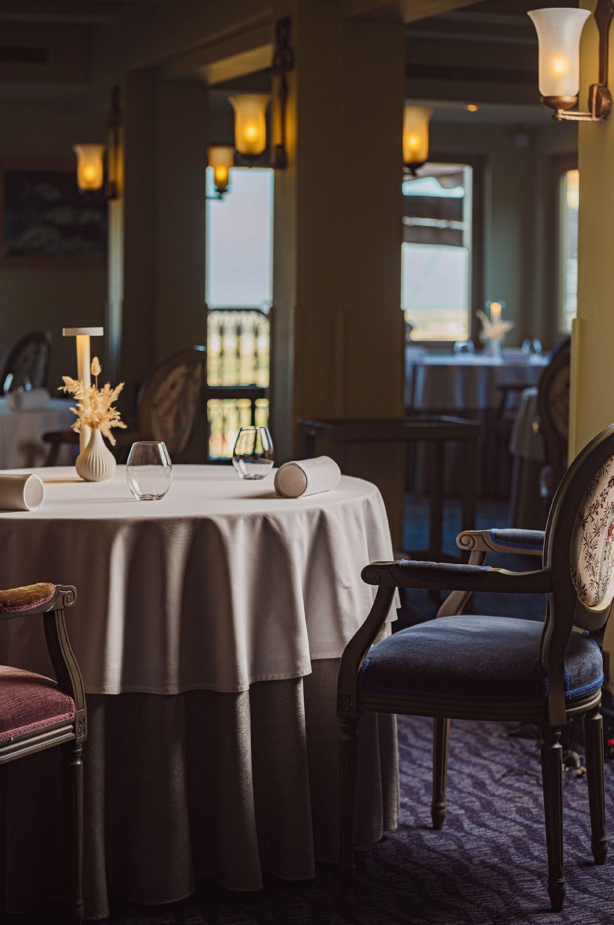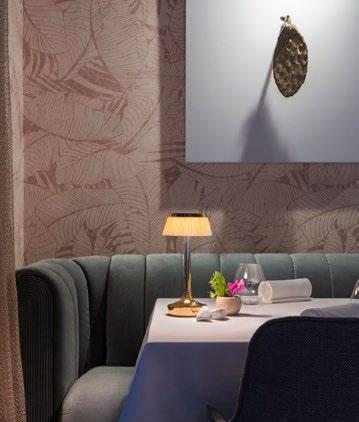 The ground floor sets the tone the moment you step inside. Warm, earthy tones dominate, grounding the space and creating intimacy. Browns and rusts reference the land, anchoring the dining experience and allowing the architecture above to shine. Texture plays a key role, from upholstered seating to layered wall finishes and bespoke details that reveal themselves slowly, much like a well-composed dish.