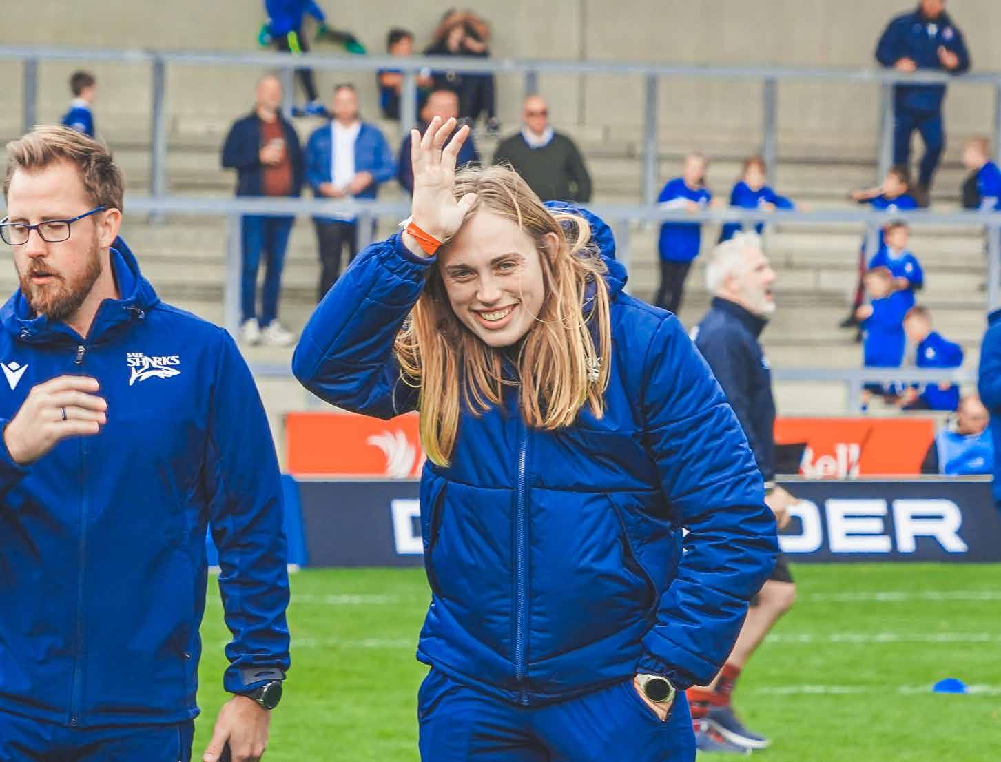 Off the pitch, she works as a Community Rugby Coach at the Sale Sharks Foundation, and is involved with the DPP as well as Project Rugby and the Are You AOK? programme run in conjunction with club partner AO.