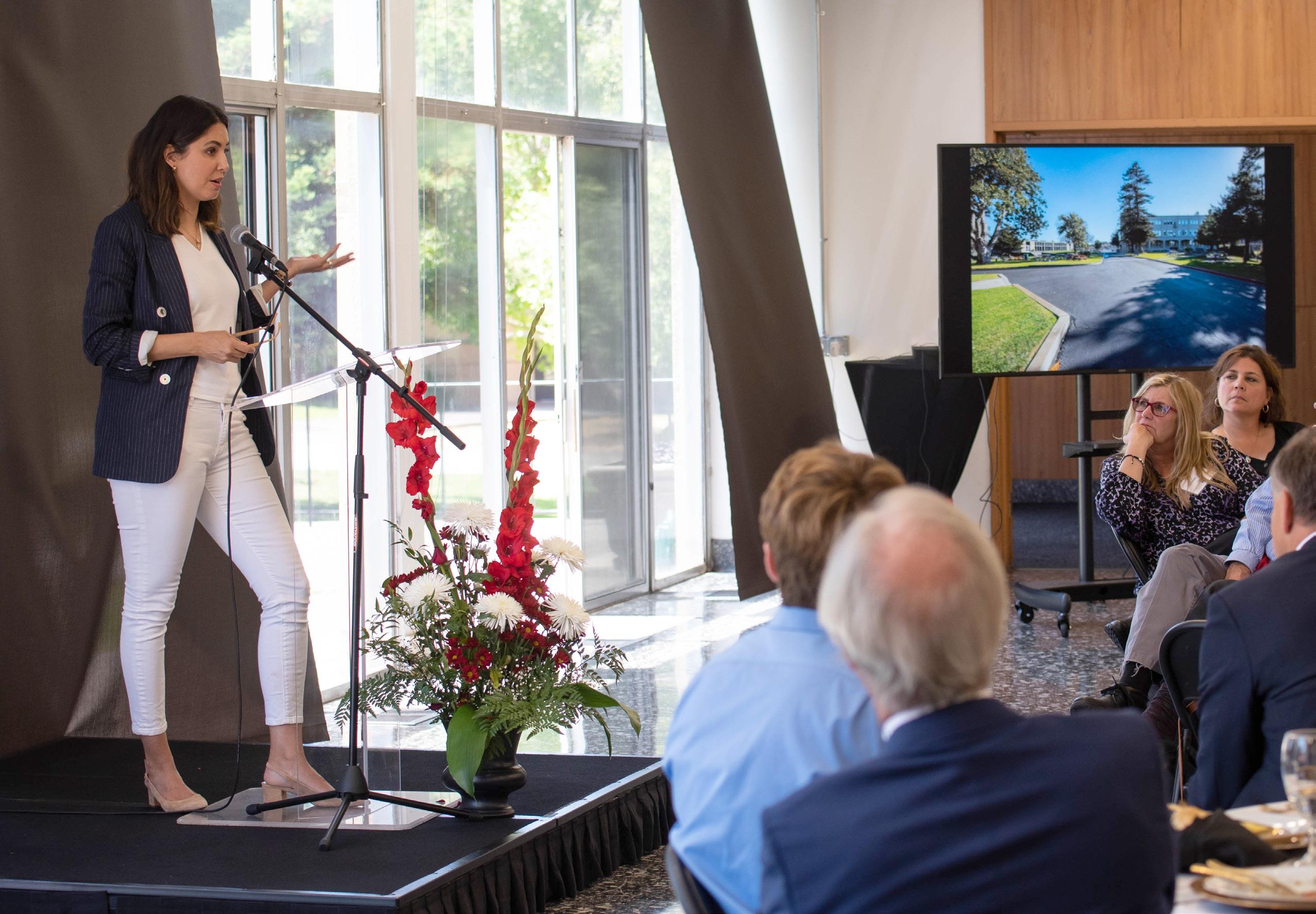 It all started as a young woman growing up in Rodeo and attending Salesian College Preparatory. She implored Salesian students in the audience to “dream big and follow your dreams”. Salesian blends the concepts of Home, School, Church, and Playground to provide an enriching experience. Cecilia recalled the welcoming environment at Salesian mentioning her fond memories of Marylou Flannery, her principal, and a French teacher who created a French IV class, so Cecilia could continue to pursue her interest in the language. She also admitted that she needs to find time to visit home more often (Cecilia’s mother, an avid volunteer at Salesian, was in the audience and smiled).