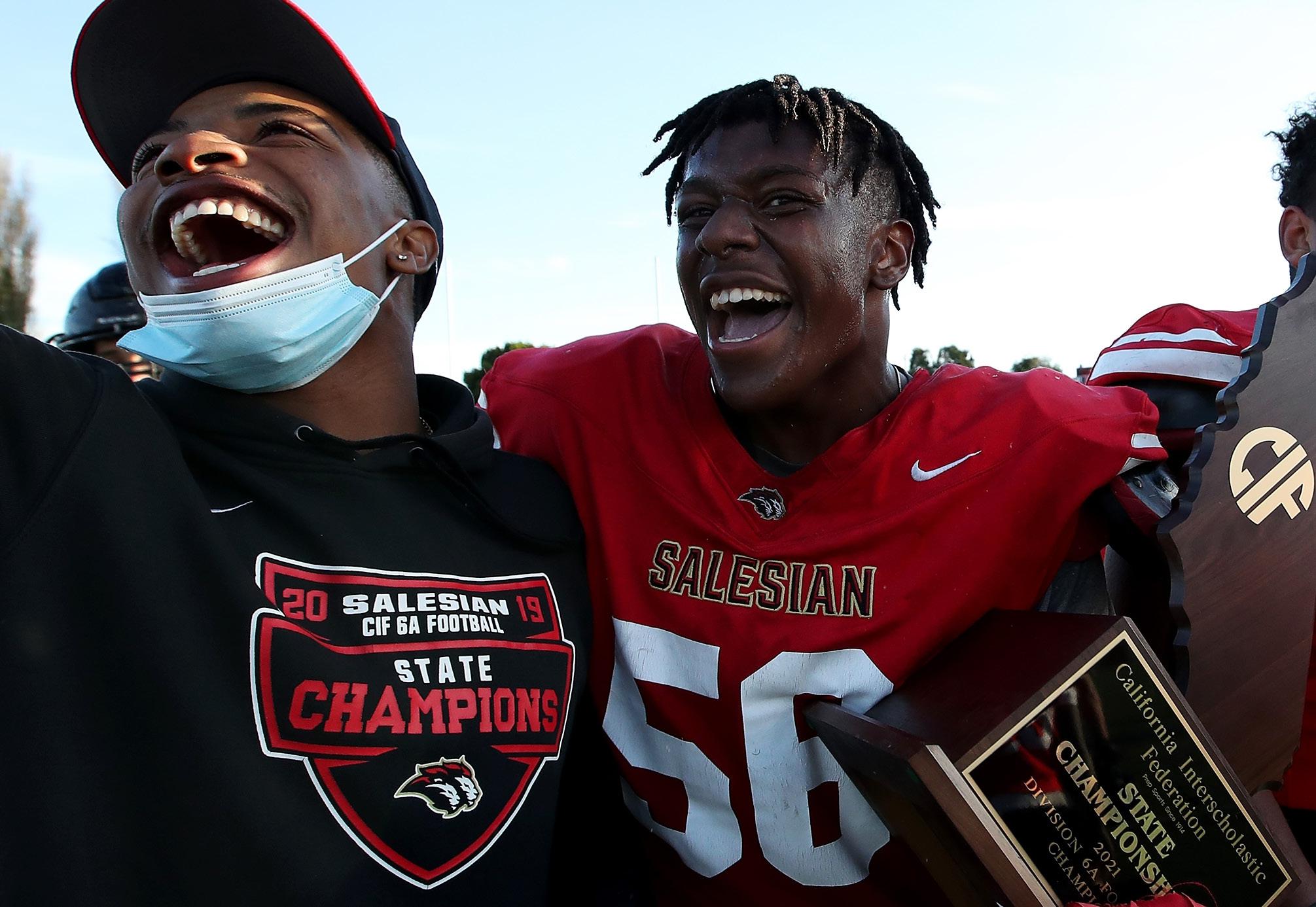 The 2021 Salesian football team finished the season with a record of 11-2, winning the NCS Division 6 Championship, the NorCal Division 6A Championship, and the State CIF Division 6A Championship. The CIF title was the team’s second state championship in a row.