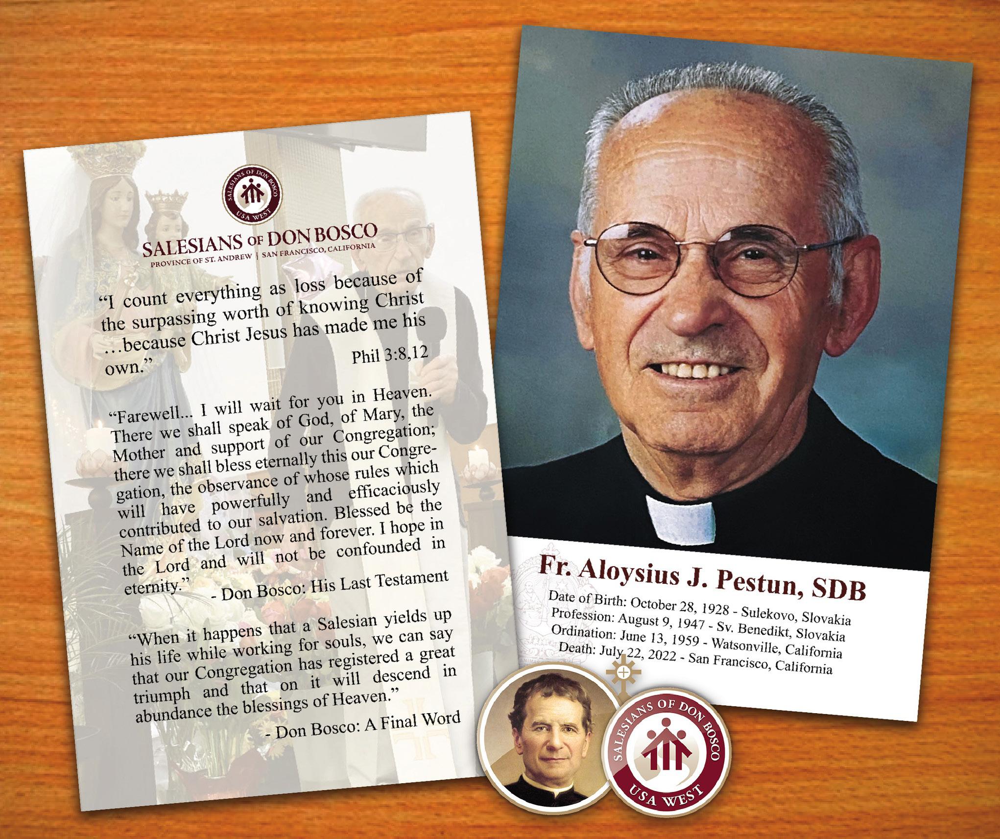 Rev. Fr. Aloysius J. Pestun, SDB, Parochial Vicar at Corpus Christi Church then later in residence at the same parish, died after a brief illness at San Francisco General Hospital, on July 22, 2022. “Fr. Al” as he was known, was appointed to Corpus Christi Church in May of 1996. At the parish he is affectionately remembered for his dedication and determined service. Fr. Al was born in Slovakia on October 28, 1928. He made his First Profession as a Salesian of Don Bosco on August 9, 1947. He was ordained priest on June 13, 1959. He enjoyed recalling his years of studies for priesthood at Aptos, near Santa Cruz, California. He also spoke often of his assignments after his ordination. Fr. Al served as the first librarian at Salesian College Preparatory. His legacy and commitment to students were honored on September 13, 2021 as his portrait was hung in the foyer of the library. While visiting, he vividly remembered the bookcases and shelves in which he helped build during his time on campus. Fr. Al’s loving-kindness towards everyone and his faithfulness towards his priestly duties will continue to be a lasting example of what it means to love God and neighbor until the last breath. Fr. Al will be greatly missed. May he rest in peace.