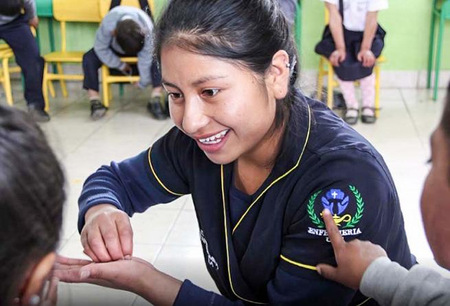 Despertar a las niñas, asegurar que ellas coman y se peinen el cabello, ayudar con sus deberes, implementar la disciplina, enseñarles sobre la fe y ponerlas a dormir. Estas son algunas de las responsabilidades diarias que tengo con las niñas del Hogar Salesiano en Cochabamba, Bolivia. Cuido a 35 niñas de un año a diecisiete años todos los días y durante todo el día. Puede ser estresante y agotador, pero todo vale la pena cuando Dios me entrega pequeños destellos de Su cara en las caras de ellas. Es algo hermoso estar presente cuando ayudo a una estudiante en la secundaria entender su deber, enseñarle a una niña a andar en bicicleta, aplicar un paño frío para aliviar un dolor de cabeza o calmar un berrinche. Es un honor amar a los niños de Dios en esta manera.