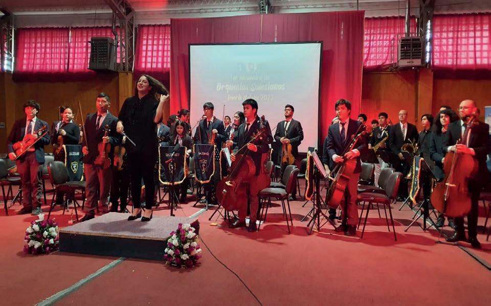 La Orquesta y Banda Instrumental del CEST participaron en el primer encuentro de Orquestas Salesianas, que se realizó en la ciudad de Puerto Natales, desde el 14 al 21 de noviembre. El objetivo de participar, según señaló la directora de la orquesta Javiera Hernández, es continuar potenciando el desarrollo integral de los estudiantes. “El desarrollo de las capacidades musicales, sociales y colaborativas de los alumnos que integran la Orquesta Sinfónica con sus pares de la Orquesta Integral Salesianos; es una oportunidad de seguir fortaleciendo y fomentando la participación de los grupos representativos del CEST y potenciar sus habilidades”, añadió.