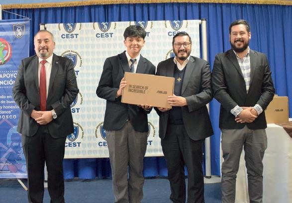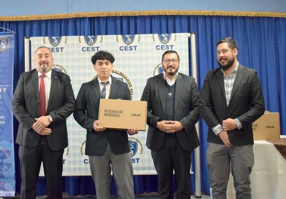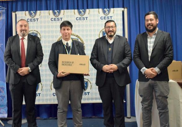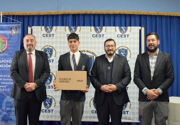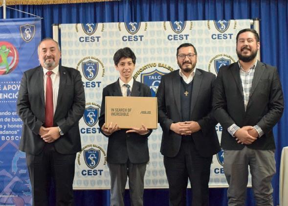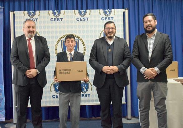 Durante la mañana de este día, el padre Darío Navarro, director de la Presencia Salesiana en Talca, y Reinaldo Castro, rector del CEST, hicieron entrega de un notebook a siete jóvenes de segundos medios. Se trata de los alumnos: Javier Chandía de 2°A HC; Benjamín Acevedo de 2°B HC; Benjamín Águila de 2° A TP; Giovani Urrutia de 2°B TP; Richard Cerda de 2°C TP; Jaime Castro de 2° D TP y Vicente Zagal de 2° E TP.
