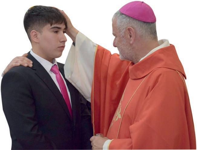 Luego de este mensaje, el obispo realizó el rito de confirmación que comienza con la renovación de las promesas bautismales, continúa con la imposición de las manos de los sacerdotes y padrinos, y finaliza con la crismación de parte del obispo a los jóvenes y adultos en el Espíritu Santo.