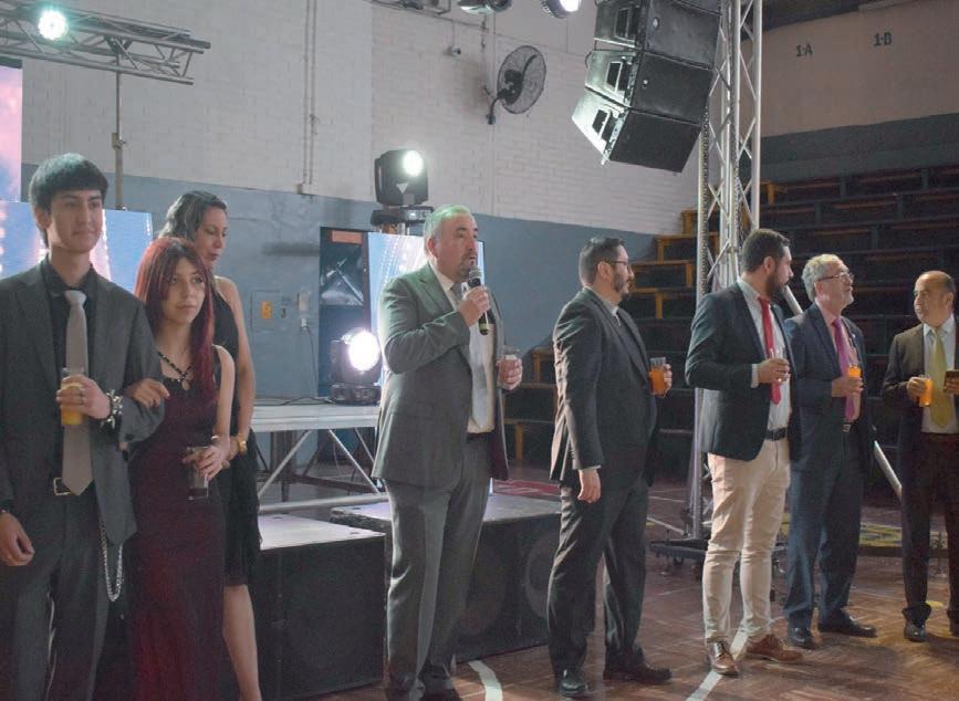 El presidente y vicepresidente del CGA, Héctor Rojas y Miguel Cancino, dieron un mensaje a sus compañeros e hicieron el brindis de inicio oficial del baile.