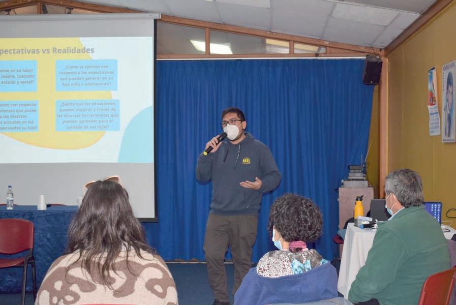 En este encuentro participaron 70 apo derados, quienes compartieron sus ex periencias como padres educadores, a partir del trabajo liderado por los psicó logos del Programa de Integración Esco lar, PIE, Valentina Quiroz y Jaime Muñoz y un equipo de educadoras diferenciales del mismo Equipo.