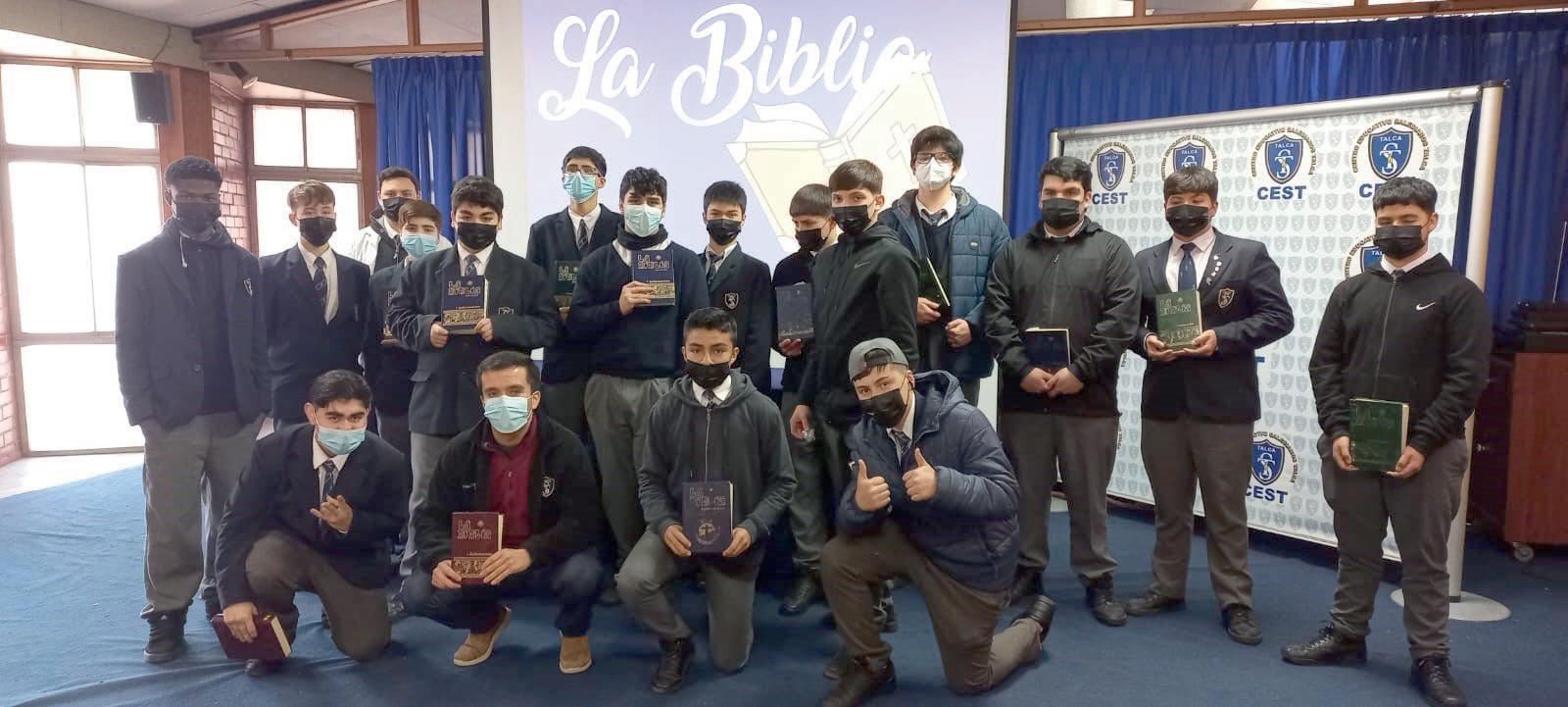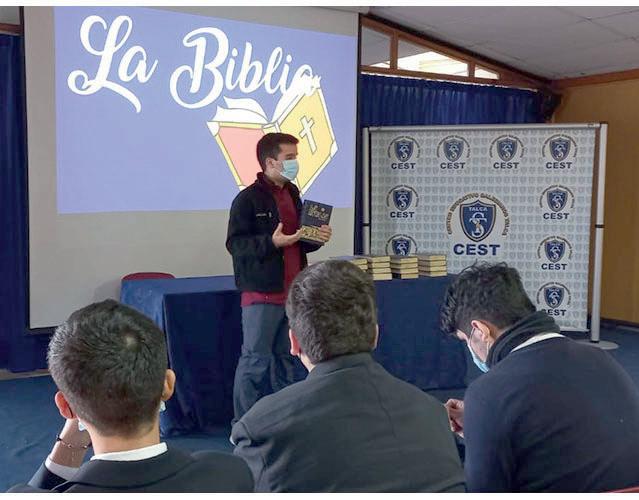 Durante todo el mes de septiembre, la Iglesia católica, celebra el Mes de la Biblia, con la finalidad de acercar a los cristianos a la Pa labra de Dios. Y en el CEST se dio inicio a este mes con un Buenos Días especial, el 05 de septiembre, donde se explicó el significado de la Biblia para el cristiano y su relevancia. El padre Darío Navarro, di rector de la Presencia Salesiana en Talca, señaló que “conocer la Biblia, es conocer a Dios, conocer a Jesucristo y toda la historia de salvación”. Agre gó que en septiembre celebramos dos grandes acontecimientos, que se relacionan directamente con la formación salesiana: el mes de la Biblia, haciendo énfasis en el buen cristiano; y el mes de la Patria, haciendo énfasis en el honesto ciudadano. “Es un mes donde podemos rezar por nuestra Patria, dos elementos que, en el interior de la iglesia, siempre van unidos, por tradición, por años, en septiembre se profundiza en las tradiciones, en los sa cramentos; es un mes de muchos significados, porque nos invita también a mirar la revelación de Dios a través de Jesucristo”, dijo padre Darío.