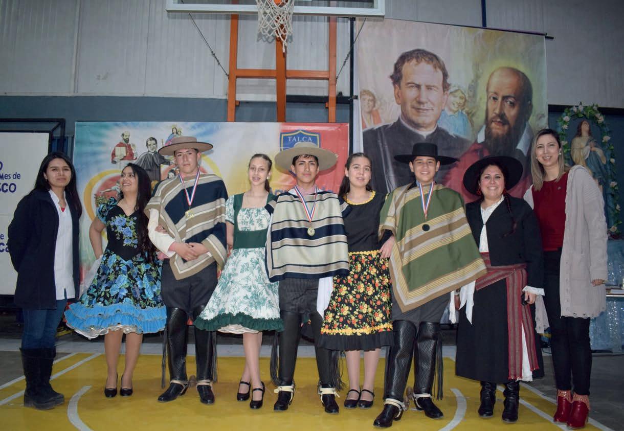 Los alumnos José Manuel Gutiérrez Ávila de 8°A junto a su compañe ra Maida Isidora Saldias Muñoz del liceo Integrado de Talca; y Alex Sebastián López Rivera de 3° ATP, junto con a su compañera Fernan da Antonia Castro Muñoz del liceo Abate Molina de Talca, participa ron en el campeonato comunal interescolar de cueca de Talca, logrando el tercer lugar en las categorías: 2 ciclo básico y categoría media.