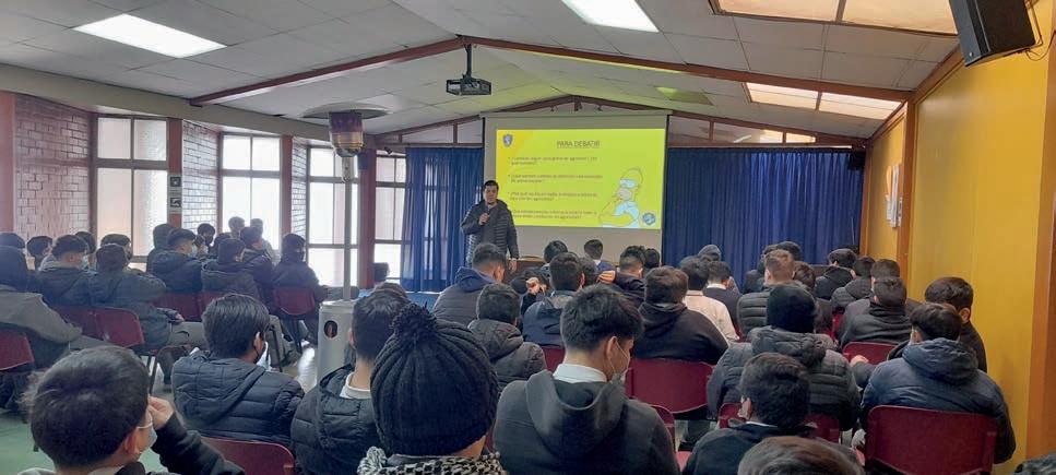 En el marco de la realización de la Semana de Prevención del Bullying, el 22 de septiembre se realizó una charla para los alumnos de enseñanza media técnico profesional y humanista científico, sobre conocer a los agresores, específicamente a los victimarios de bullying. La actividad fue liderada por el psicólogo Nicolás Arriagada, quien abordó la temáti ca a partir de diferentes preguntas, como si conocían casos graves de agresión, qué sienten los alumnos al observar situaciones de acoso escolar, entre otras. A partir de este diálogo, los jóvenes comenzaron a compartir experiencias.