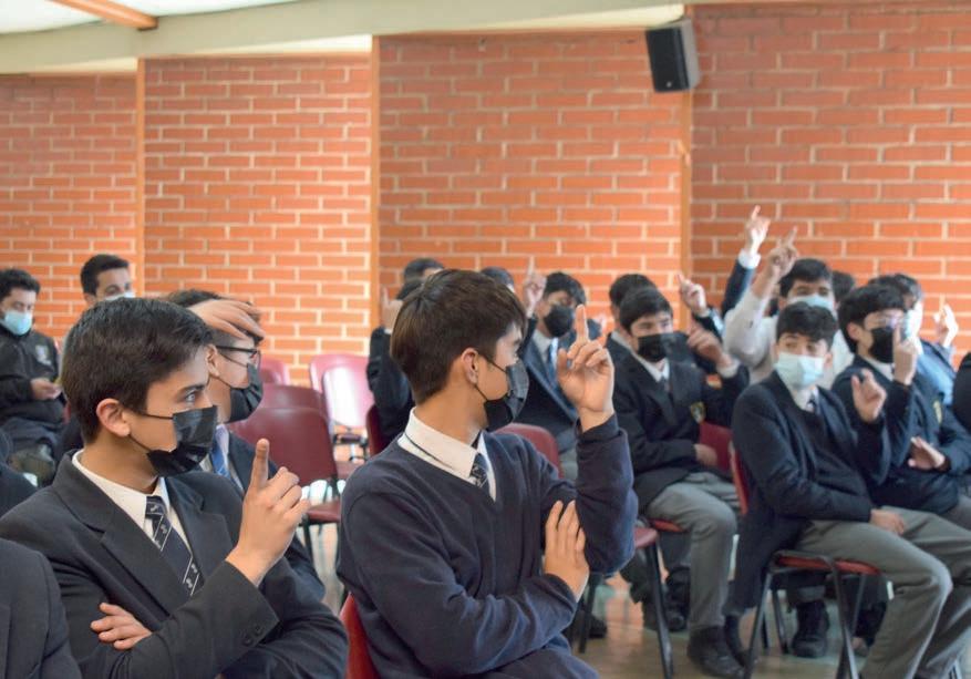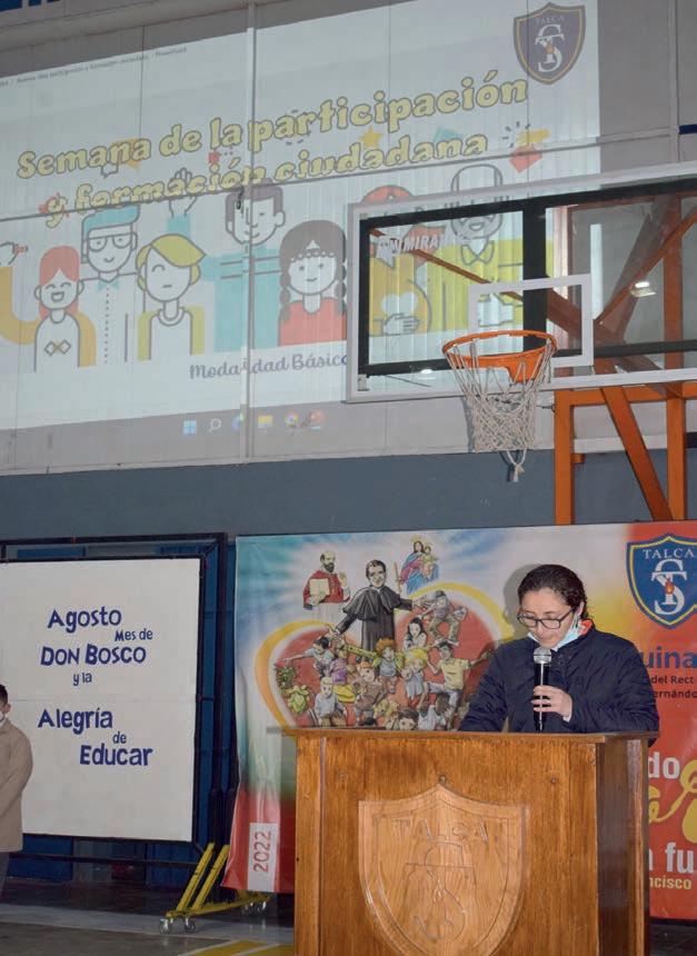 En el Buenos Días del 08 de septiembre se dedicó la oración por la educación ciudadana para fortalecer la unidad y el diálogo entre los alumnos. Los pro fesores a cargo del mensaje, Gonzalo Peralta en Sede Sur, Anselmo Henríquez en Sede Norte con enseñanza media, y Paula Meza con enseñanza básica, des tacaron la importancia de participar en las decisiones del país, recordando en reciente proceso vivido el domingo 04 de septiembre en el plebiscito de nueva constitución, donde todos los ciudadanos mayores de 18 años tenían que emitir su voto. Los docentes también señalaron todos los derechos de los ciudadanos van acompañados de un deber, y “el principal deber es el respeto, el respeto hacia los padres y hermanos en la familia, y en el colegio respeto a los compañeros, ha cia los profesores, hacia todos los educadores, desde el portero hasta la señora de la cocina, todos merecemos respeto, pero también tenemos que respetar”, agregó la profesora Paula Meza.