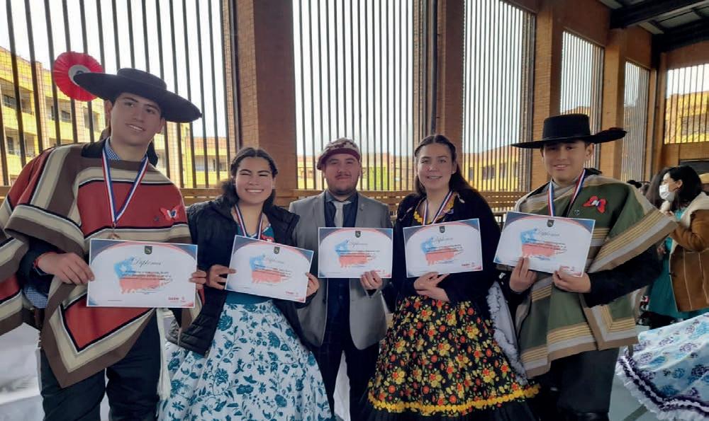 Todos estos jóvenes son integrantes del taller de folclore del CEST y de la Agrupación folclórica Peumayen, dirigida por el profesor Matías Chamorro.