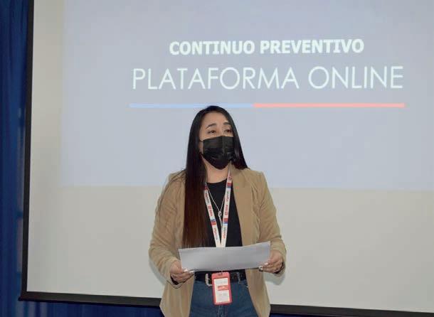 En la segunda parte y final de esta jornada, Yaine Rojas presentó los niveles de desarrollo de los establecimientos focalizados e implemen tación de la Plataforma Online Continuo Preventivo, dando así por fina lizada la jornada.