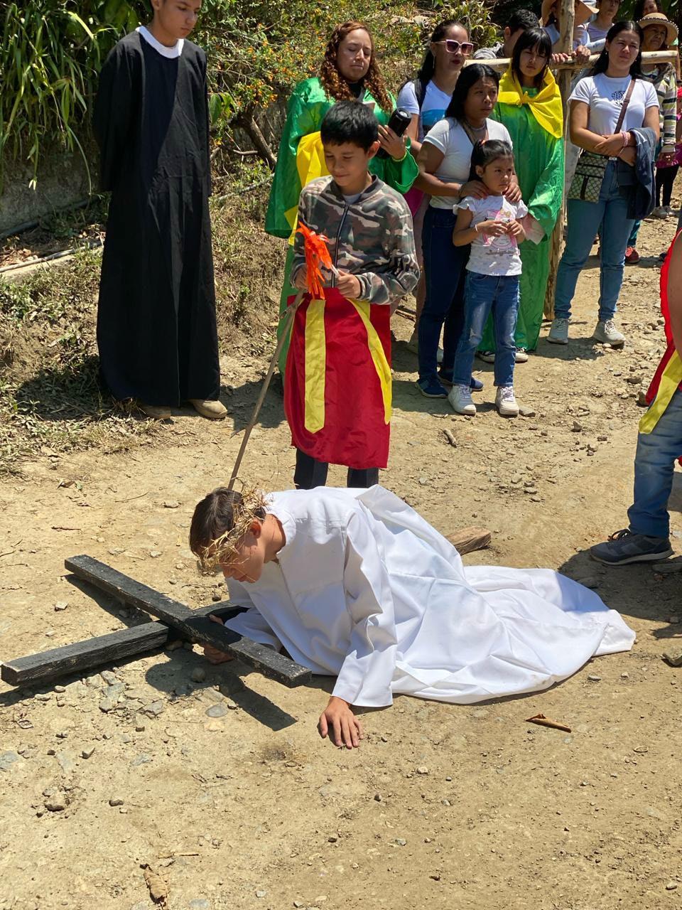 La comunidad de Soledad, a pesar de ser pequeña en tamaño y número de personas, destaca por su extraordinaria calidez y hospitalidad, cualidades que se reflejan de manera notable en los niños de la vereda. Aunque al principio mostraron cierta timidez y reserva, con el paso del tiempo se acercaron a nosotros con curiosidad y amabilidad. Pronto nos hicieron sentir parte de su entorno, acogiéndonos como si fuéramos miembros de su propia comunidad. Los niños de Soledad, siempre sonrientes y rebosantes de alegría, a veces encontraban dificultades para concentrarse y seguir instrucciones largas. Sin embargo, su preferencia por conocer de Dios, juegos simples como la pintura, las canciones y los bailes, no solo revelaba su inocencia y creatividad, sino también su deseo innato de aprender del amor de Dios y disfrutar cada momento al lado de los misioneros. A pesar de sus juegos y distracciones, los niños fueron nuestros fieles compañeros durante nuestra estancia en la vereda. Desde las mañanas hasta las comidas, pasando por los rituales y las celebraciones religiosas, su presencia vital y entusiasta hizo que cada día fuera más especial y significativo. Gracias a los niños también logramos conectar con los adultos de la comunidad, quienes se involucraron activamente en todas las actividades del triduo pascual. Su devoción y fervor en las celebraciones religiosas no solo nos conmovieron, sino que también fortalecieron nuestro vínculo con la comunidad. Soledad se distingue como una comunidad fraterna y generosa, donde su generosidad hacia los misioneros que visitan la vereda es un claro reflejo de su espíritu solidario y bondadoso. Nos sentimos profundamente agradecidos con la comunidad. Cada día en esta comunidad nos regaló momentos de alegría y aprendizaje que atesoraremos por siempre en nuestros corazones.