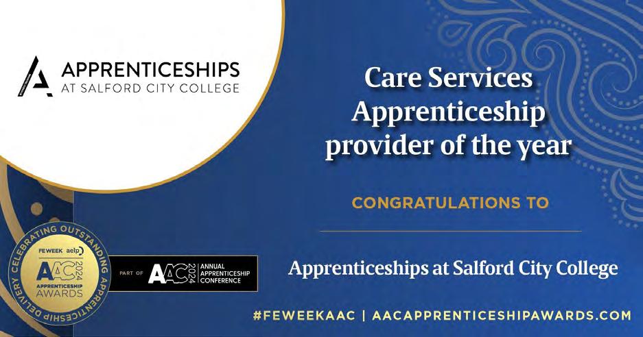 While National Apprenticeship Week shines a spotlight on the achievements of apprentices and employers, it’s also an opportunity to celebrate our dedicated staff. Across the Salford City College Group, our teams work tirelessly to nurture talent, create opportunities, and help apprentices achieve their potential. These outstanding practitioners play an invaluable role in shaping a brighter future for all involved, some of whom are showcased within this publication. On page 14, we are delighted to introduce you to our Apprenticeship Functional Skills Team, a very high-performing team that supports apprentices with their English and maths learning. A new feature, ‘Meet the Team,’ can be found on page (8), where we hear from a fantastic colleague, Lisa Littlemore, who is an exceptional Early Years Education Trainer Assessor.