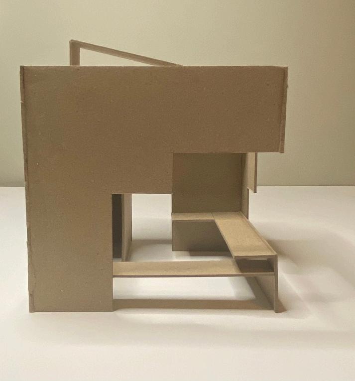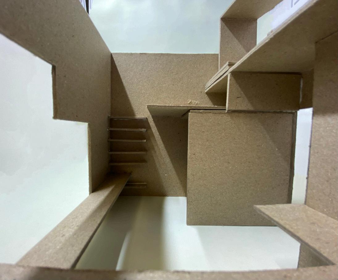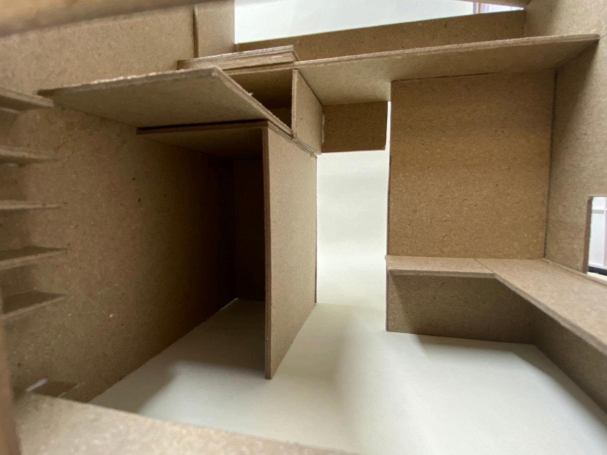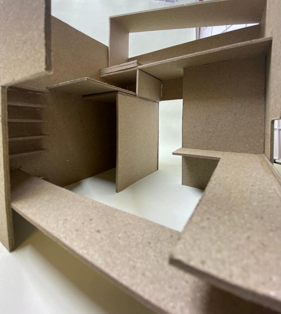 The design approach involved constructing the physical space to better understand spatial planning and scale, allowing for a more accurate and immersive process that included the concept-building phase, programming, and design phase with materials selections and rendering.