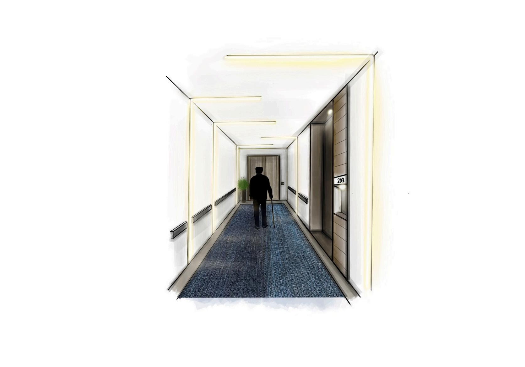 Enhancesafetyforolderadultswith durablematerialslikewood,lowVOCcarpet andemergency buttonsintheirrooms